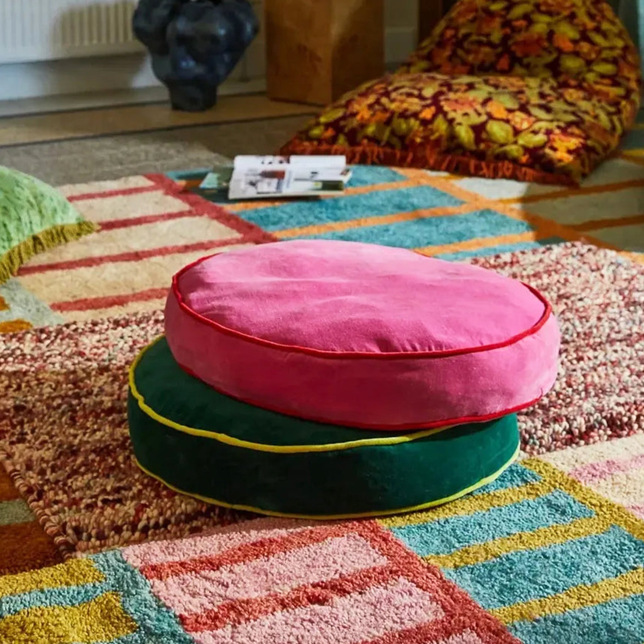 Cozy up any corner of your home with statement floor cushions that are as big on style as they are on comfort. Perfect for keeping tooshies comfy on the ground or stack 3 or 4 high for a colourful ottoman. Little people also love them for imaginative play. From lily pads to wheels on a bus, hours of fun await with the Etienne Velvet Floor Cushion in the shade Cosmo Pink
