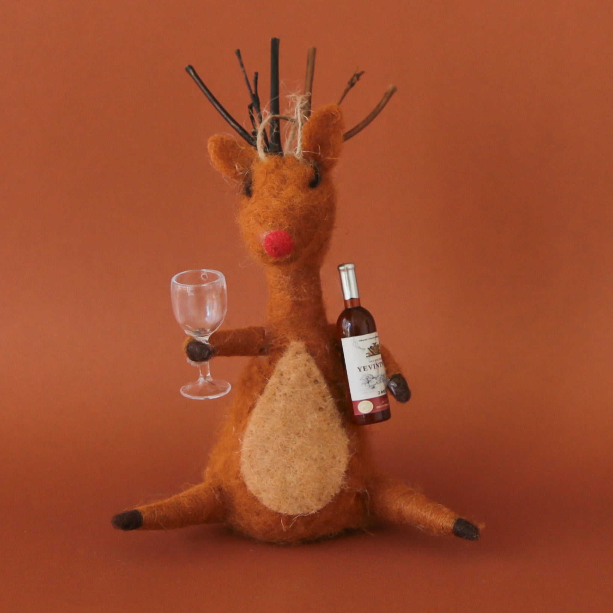 This Felt Reindeer with Wine ornament adds a cheeky touch to your holiday decor! Even the holiday animals are getting in on the festive fun this season, with a glass of wine in hand. Perfect for adding a little joyful chaos to any room in your home. Cheers!