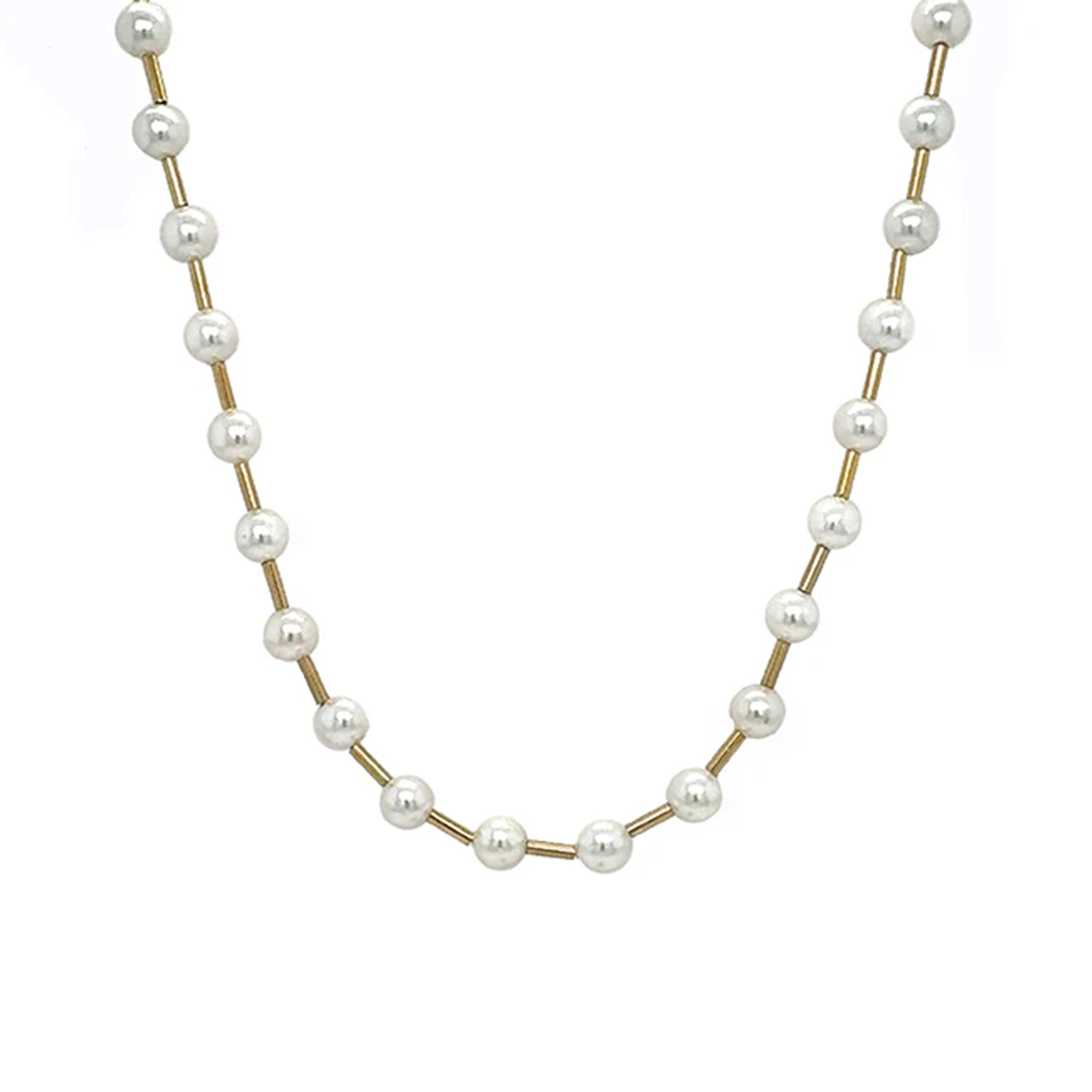 Get ready to add a pop of class and texture to your necklace stack with this Gadot Beaded Necklace - Pearl! Featuring 3 mm Pearl beads and gold tubes, it can be worn at a length of 15 inches with an extra 1.5 inches of extension. Made with 14K gold fill materials, this necklace is sure to become your new favorite accessory!