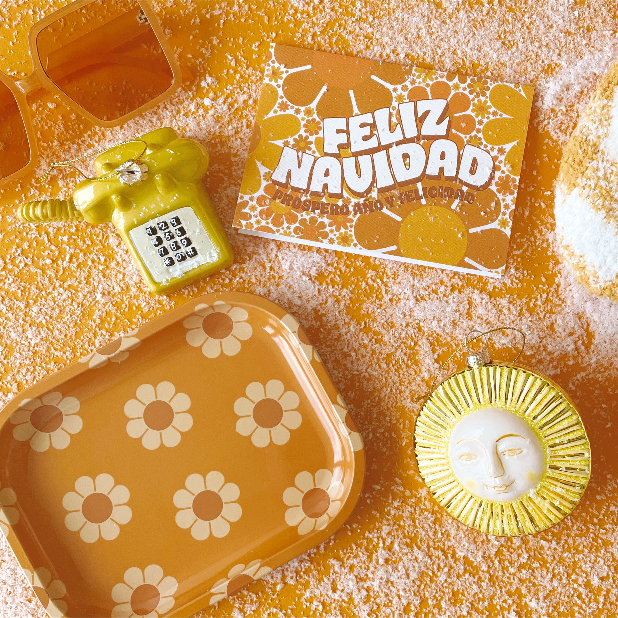 Spread joyful vibes this holiday season with the Feliz Navidad Yellow Card. Featuring vibrant, groovy floral patterns, this playful design adds a cheerful touch to your holiday greetings