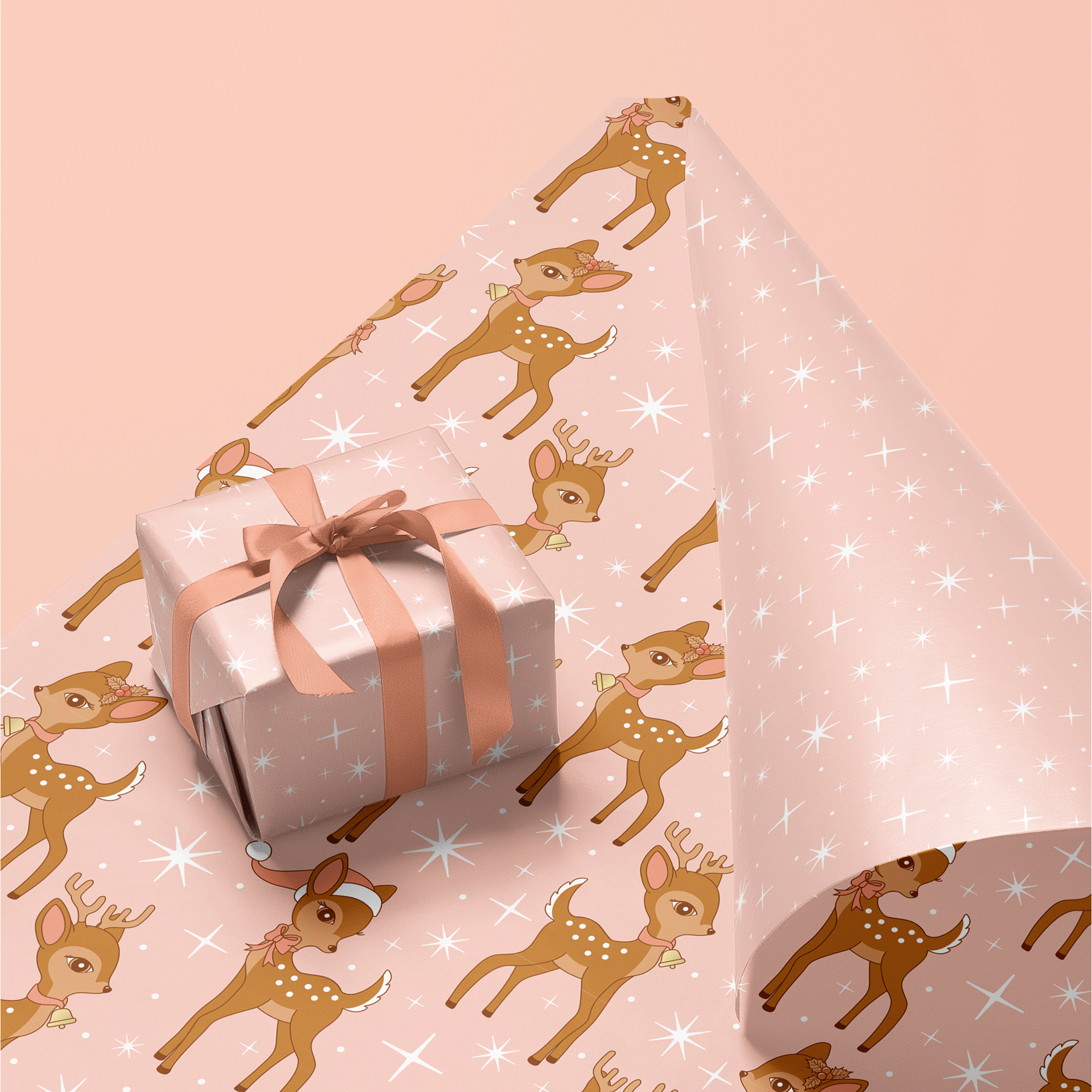Our Sunshine Studios exclusive, double sided gift wrap featuring a repeating pink retro deer print. This sweet, high-quality gift wrap is double sided, providing you with a variety of options for all your gift wrap needs. Both options will have your gifts looking festive and rich with color!