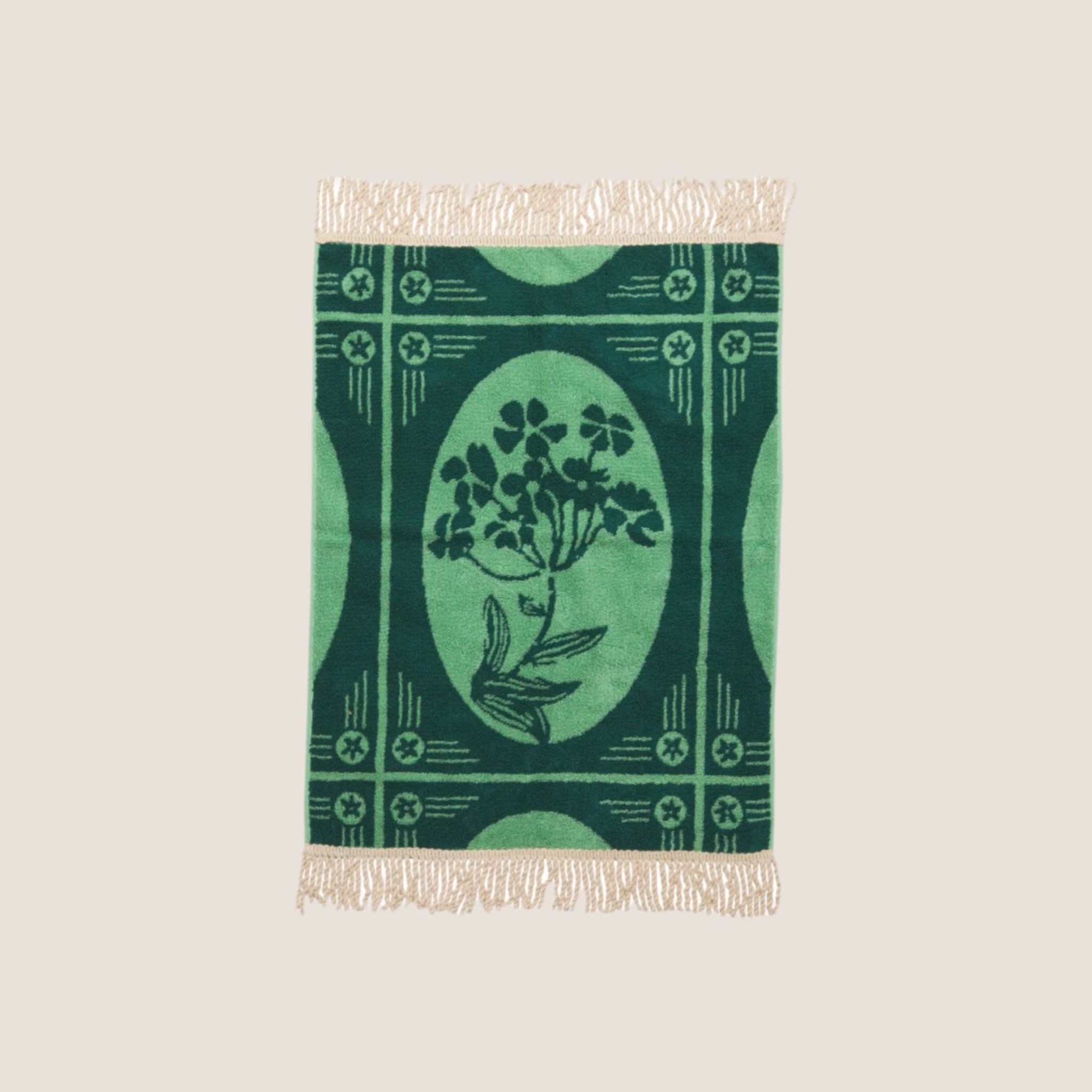 Brighten your bathroom or kitchen with Sage + Clare's plushest Gigi hand towel in the shade emerald green. made from high-grade terry toweling to deliver dreamy texture and easy practicality and featuring a stunning green floral pattern and fringe detailing on two ends.