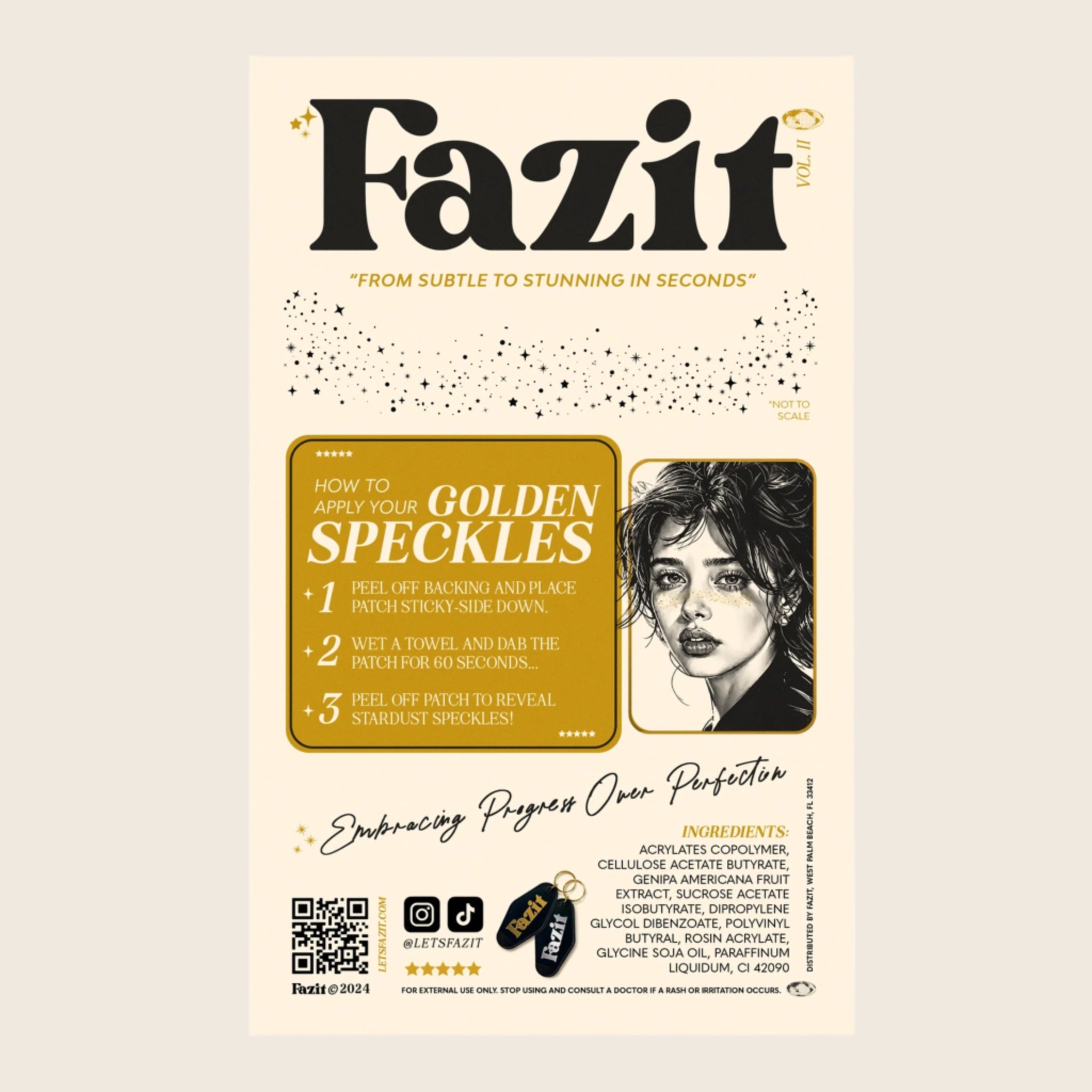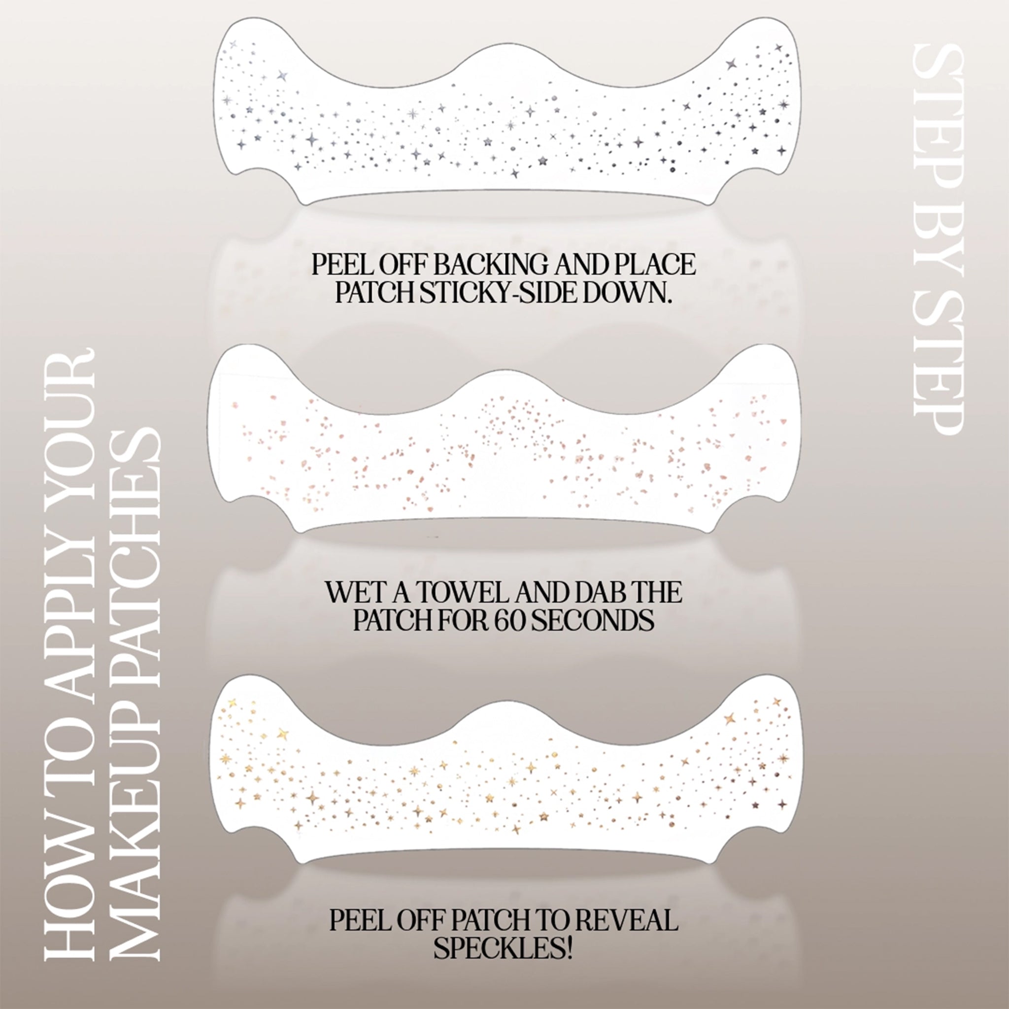 Fazit's Gold Stardust Speckle patches aren't merely makeup — they're a statement. Their innovative makeup patches ensures a seamless application process, allowing you to unveil your luminous transformation in mere seconds. Simply press, pat, and peel to reveal effortless glamour. Each patch is adorned with shimmering, golden speckles to highlight your beauty like never before.