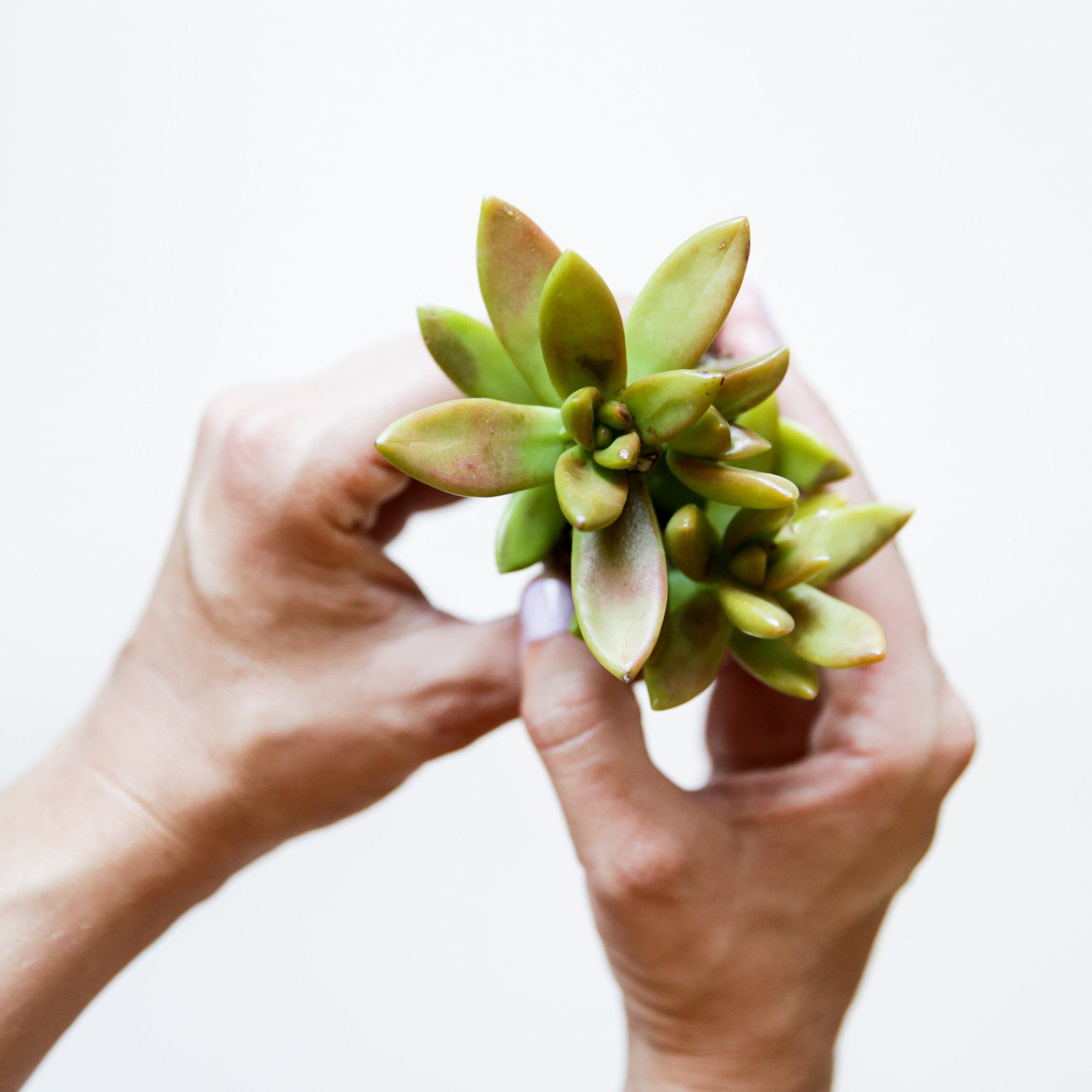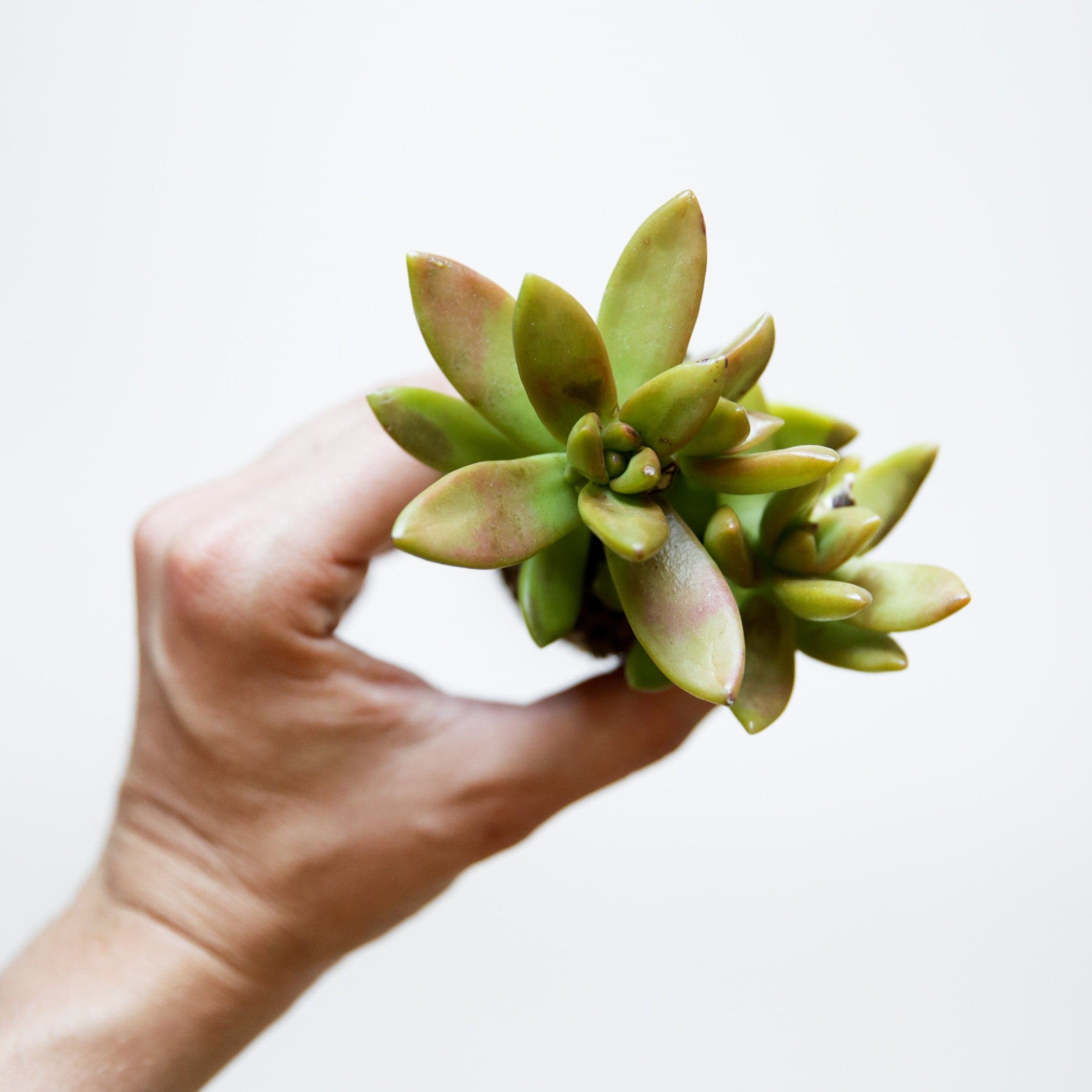With a golden-apricot hue and pink tipped leaves, this gorgeous succulent is begging for a chance to spill out of your next terrarium or bring a splash of color to your living wall.