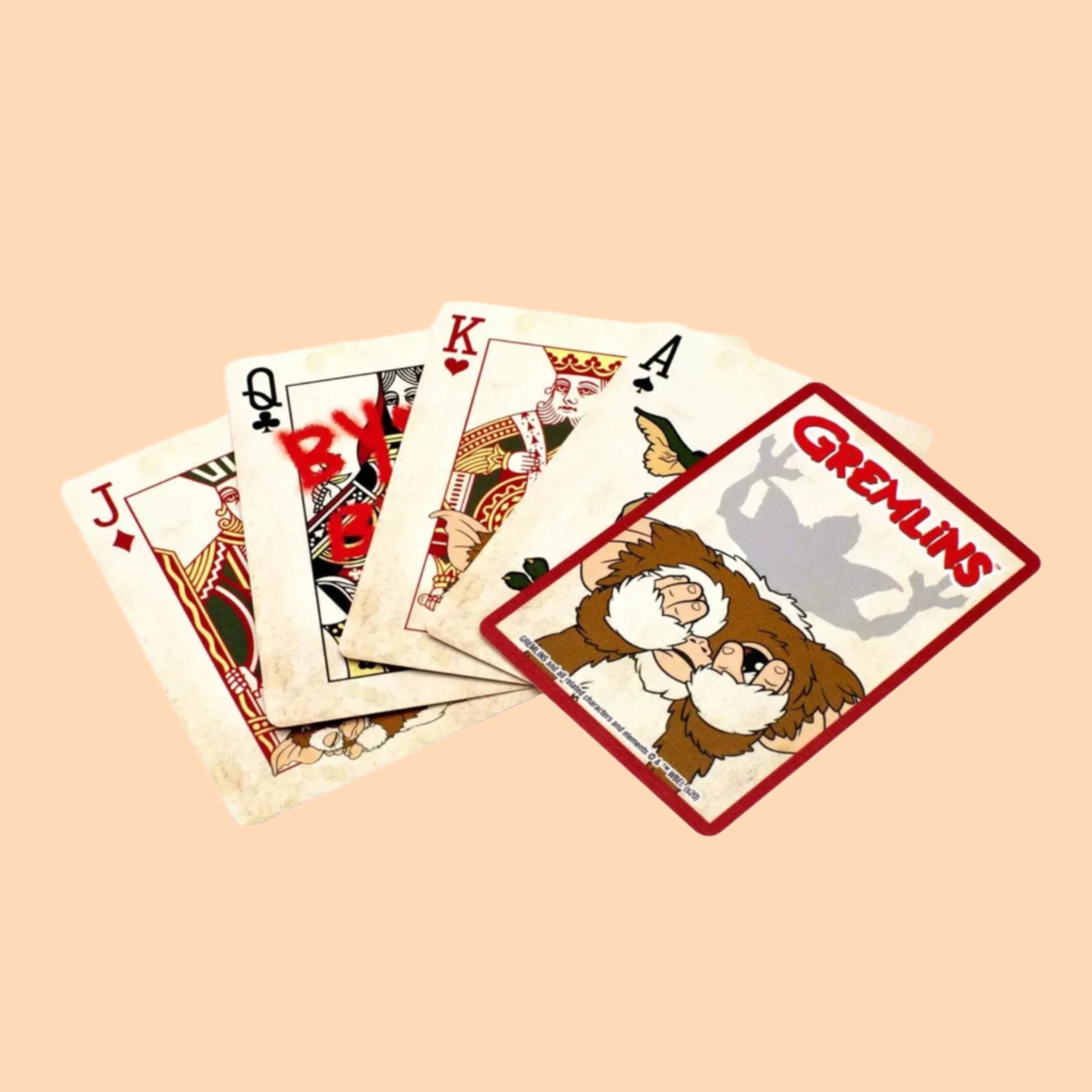 Bring home this deck of Gremlins playing cards! Each card has been modified with the mischief and mayhem of the Gremlins! Includes 52 playing cards plus 2 jokers. Playing cards are great for all types of card games, stocking stuffers and more!