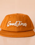 Get ready to let the good times roll with our Good Times Flat Brim Hat. This cool hat features a flat brim and a unique burnt orange shade, with ivory embroidered text for a pop of contrasting color. Perfect for beach days or adding some good vibes to your everyday outfits.