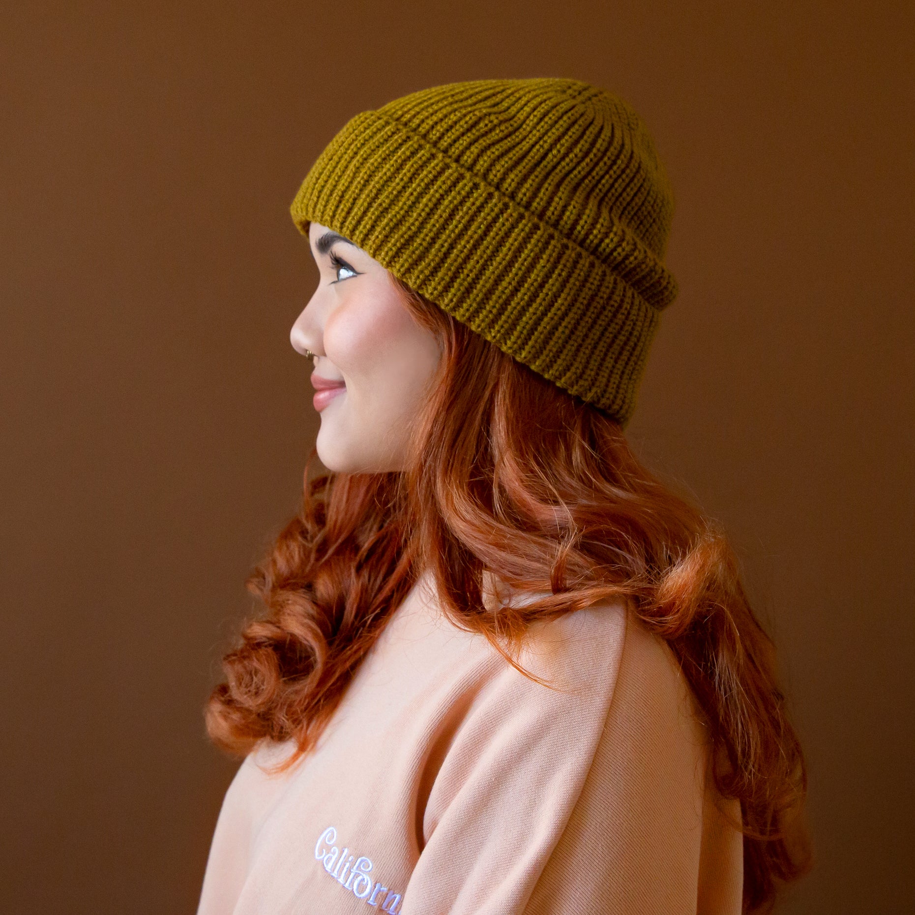 The Piper Beanie in the shade Olive is the ultimate blend of comfort, style, and versatility. Crafted from a soft, 1x1 knit ribbed fabric, this beanie features a classic shape with a folded cuff for a snug, secure fit that keeps you warm on chilly days. Whether you're heading out for a winter adventure or simply adding a cozy touch to your everyday look, the Piper Beanie is the perfect choice.