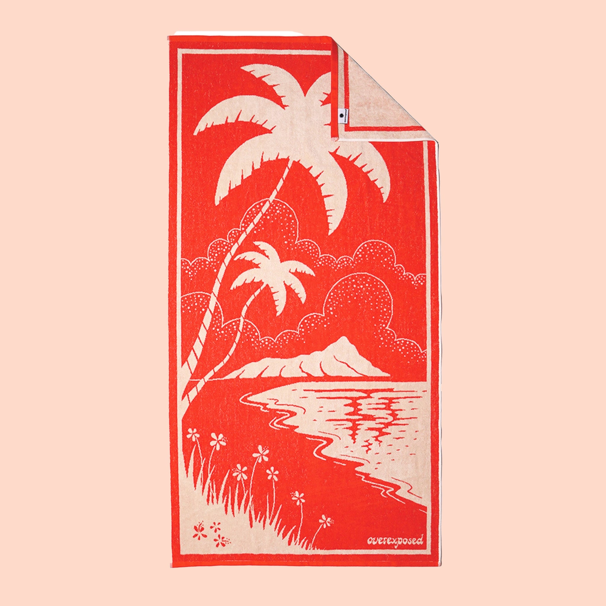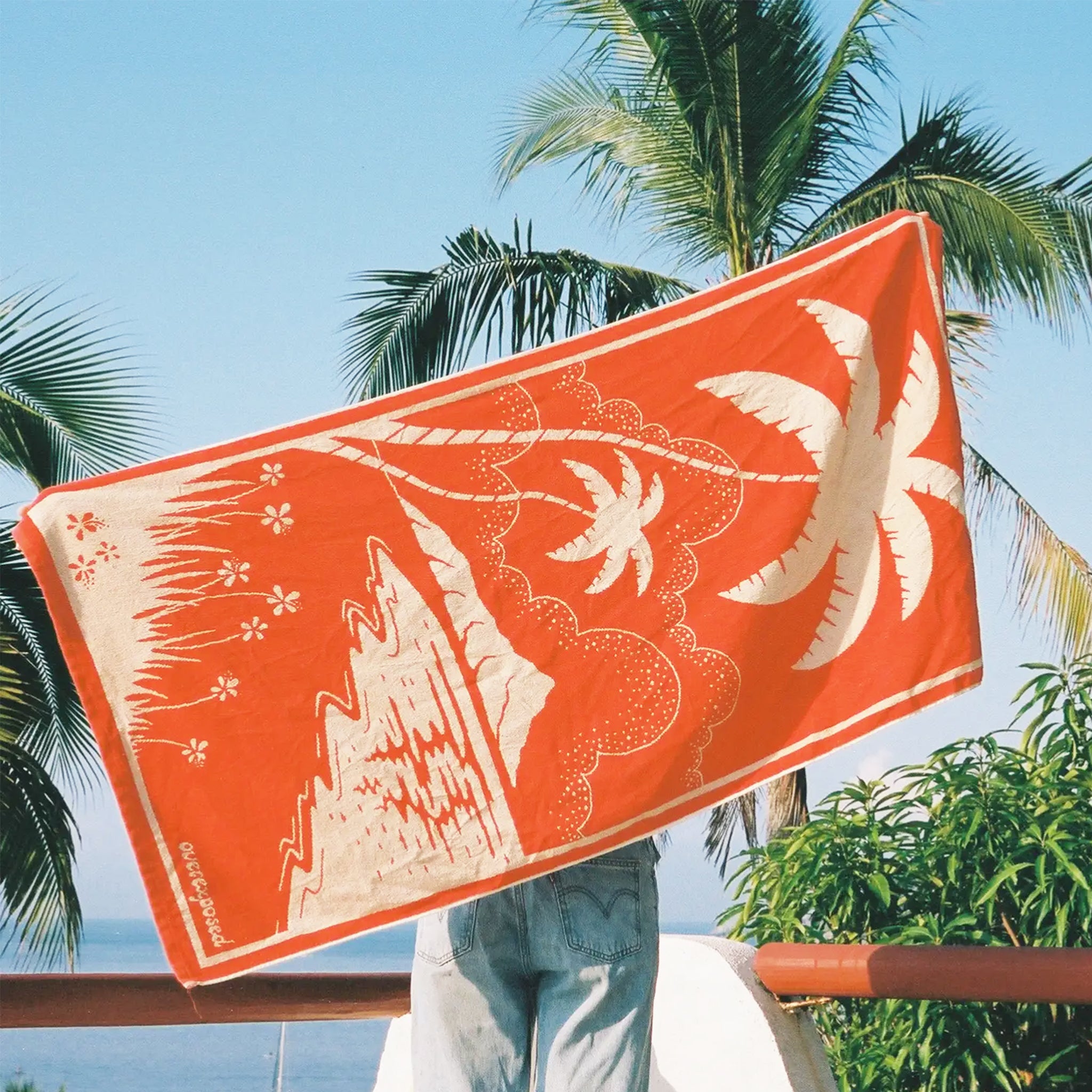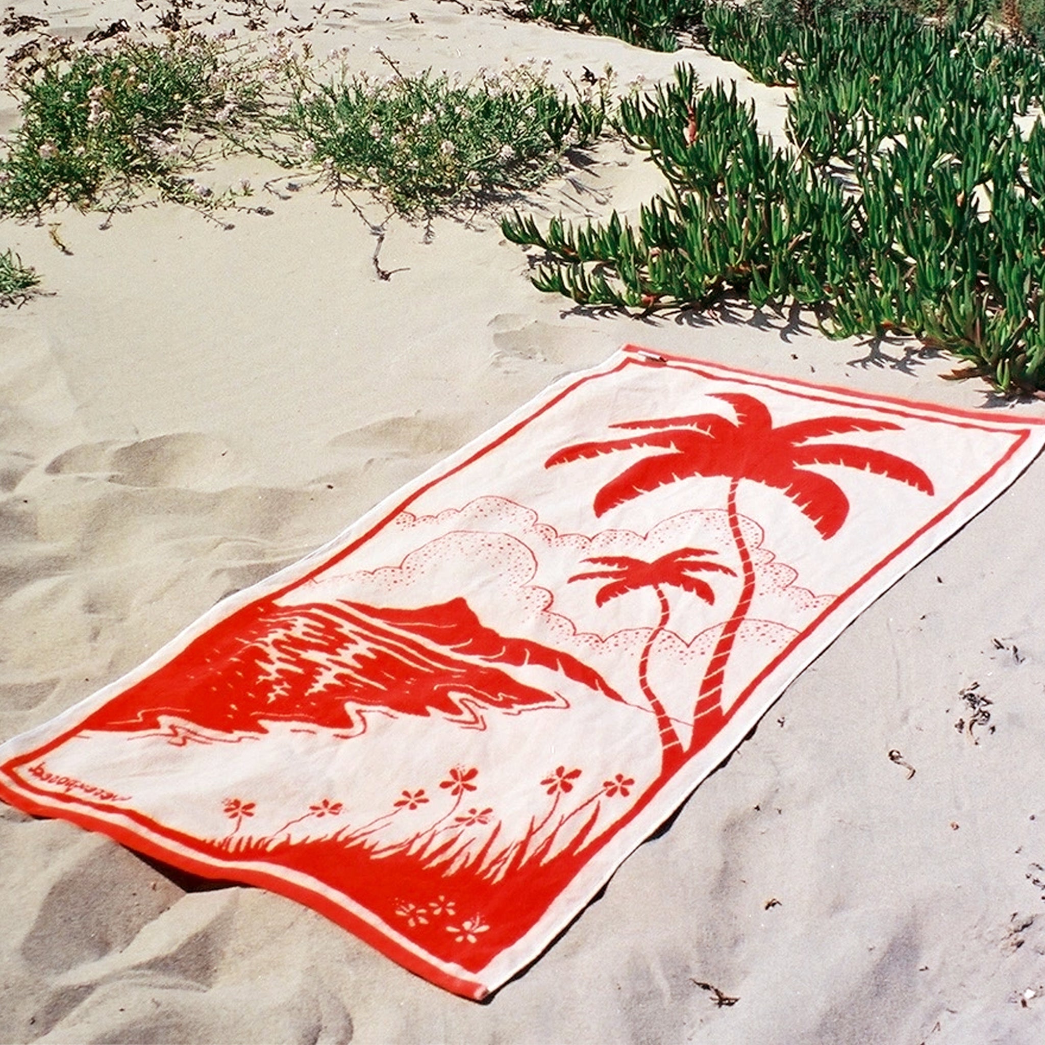 The Hanelei Palm towel features a beautiful, unique hand drawn design in warm red and sand. Use it at the beach, by the pool, or as a bath towel. Rest easy knowing that you're wrapped in 100% organic cotton, free of harmful dyes and chemicals. The best thing for your skin and the environment.