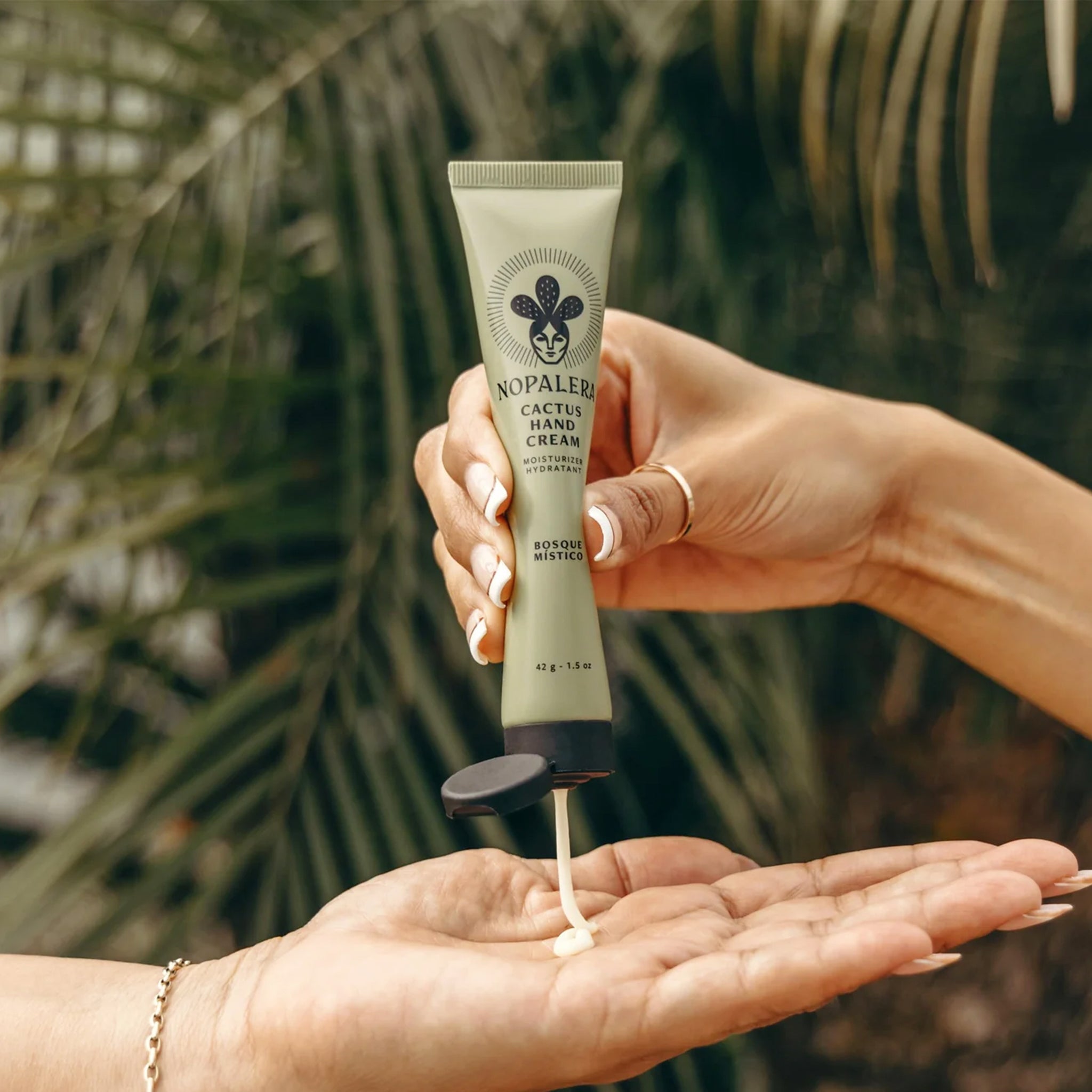 Indulge in luxurious daily hydration with the Bosque Místico Hand Cream. This travel-friendly must-have features native Mexican prickly pear oil for deep nourishment, while Vitamin E and K provide anti-inflammatory benefits. Keep your hands protected, strengthened, and hydrated with our signature ingredient.