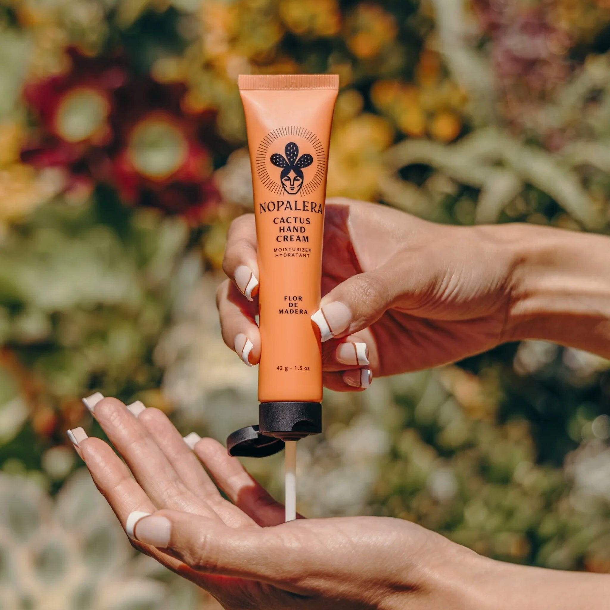Experience deep hydration on-the-go with Hand Cream | Flor De Madera. This ultra-luxurious formula, featuring native Mexican prickly pear oil and Vitamin E and K, nourishes and protects for strong, supple skin. Make this travel-friendly must-have a part of your everyday routine!