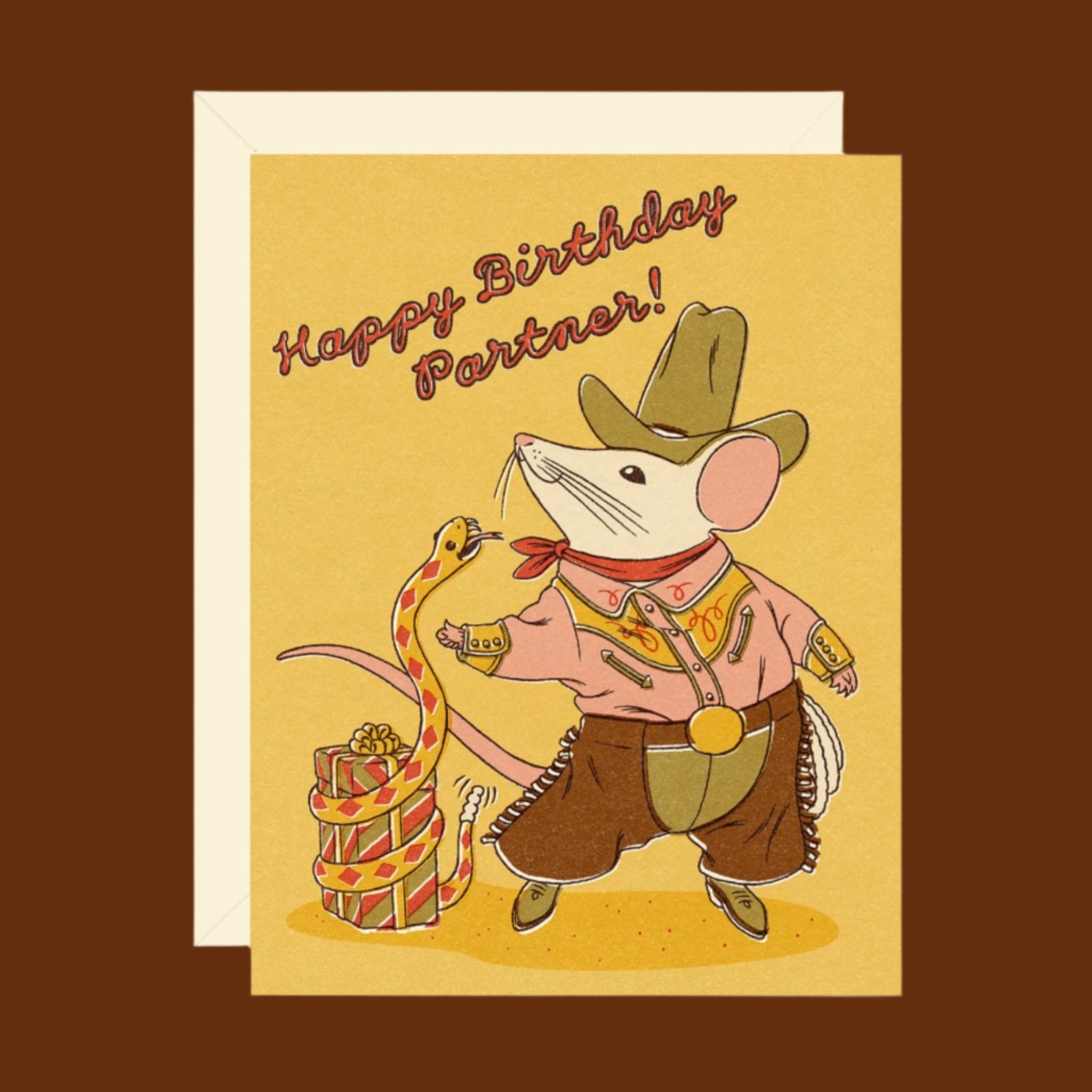 This playful cowboy mouse rounds up your most fantastic birthday ever, joined by his sneaky snake sidekick and a charming new gift!