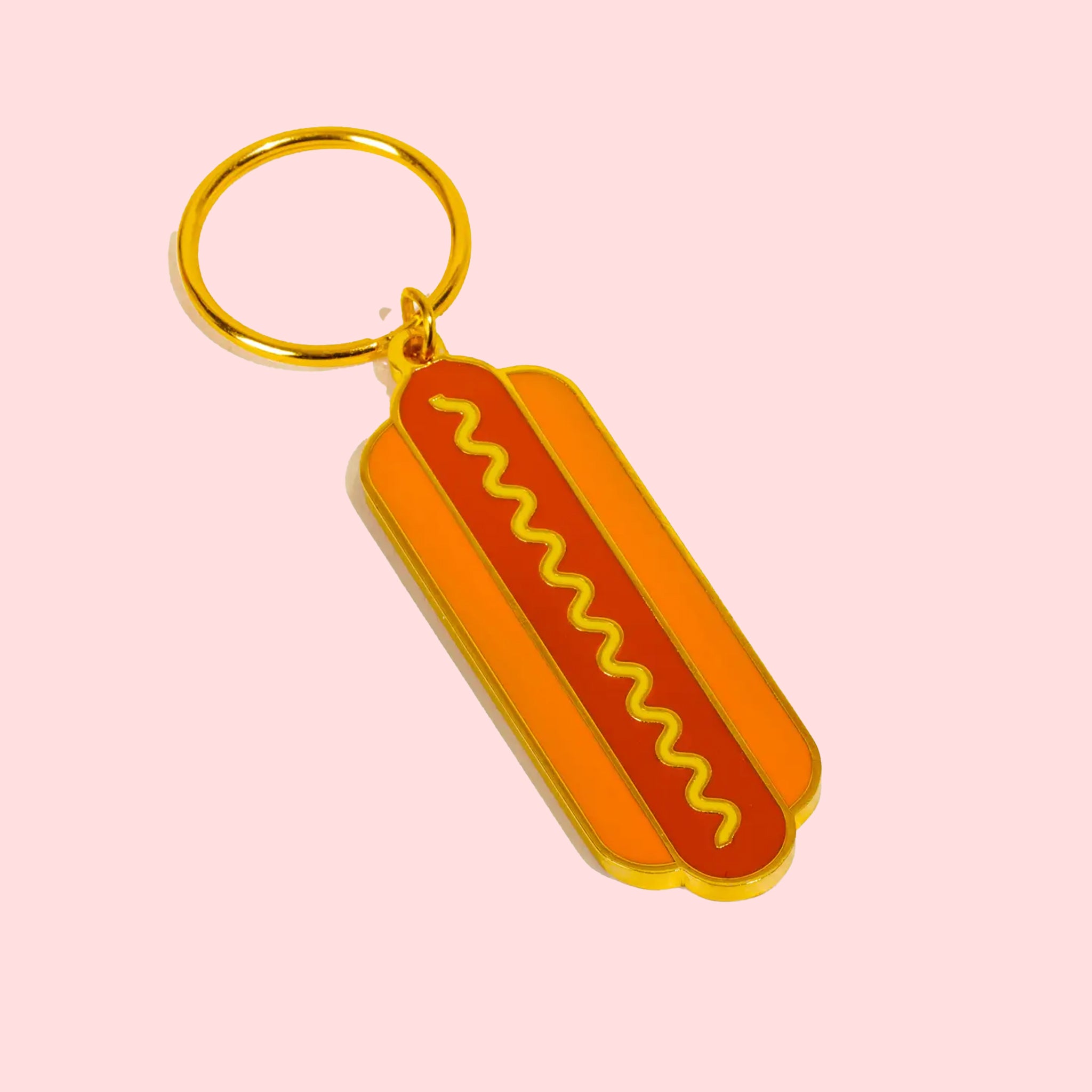 This keychain will make any hot dog lover's summer. Double sided with a gold ring, this summer must-have is shaped like a hot dog. Perfect for the playful and quirky person in your life!