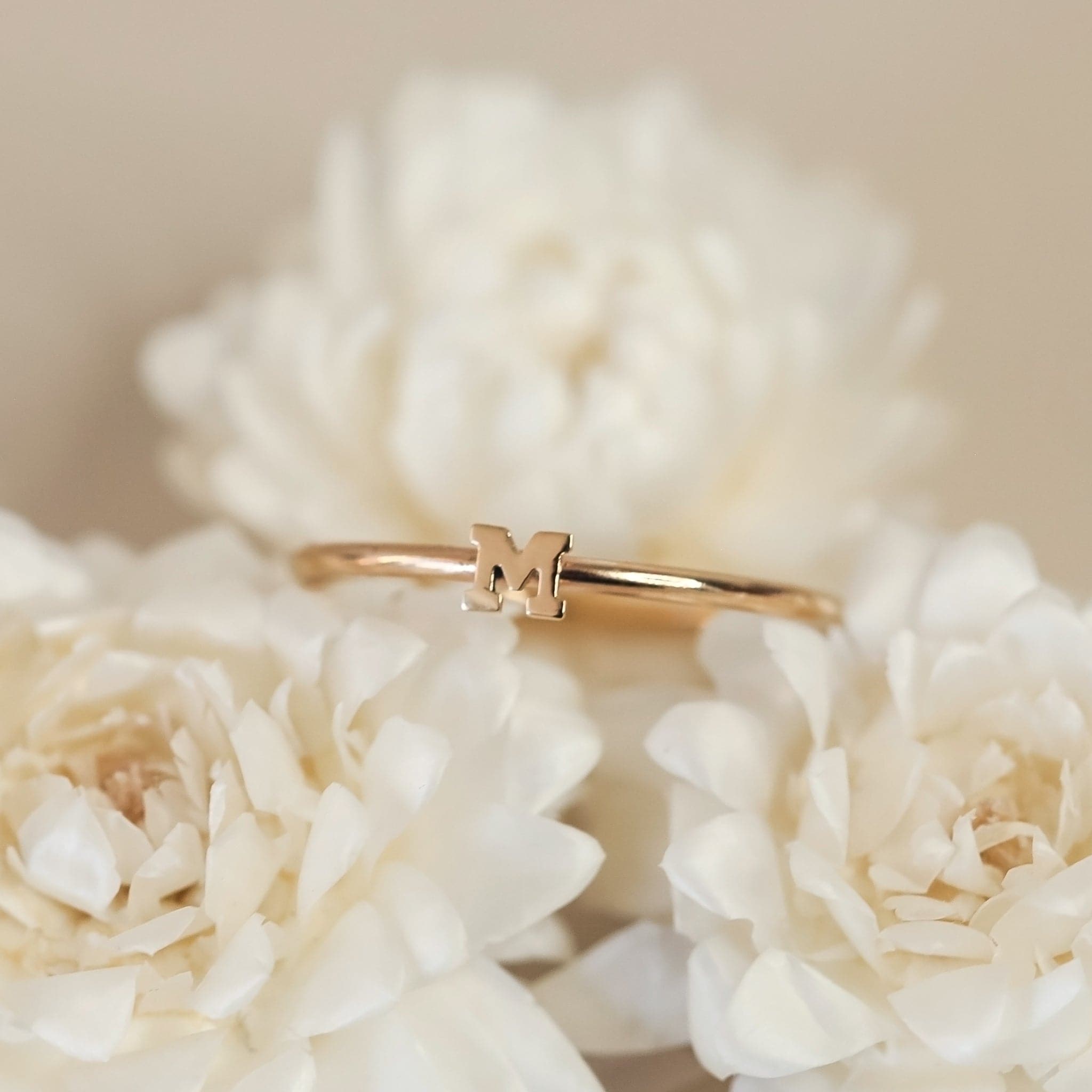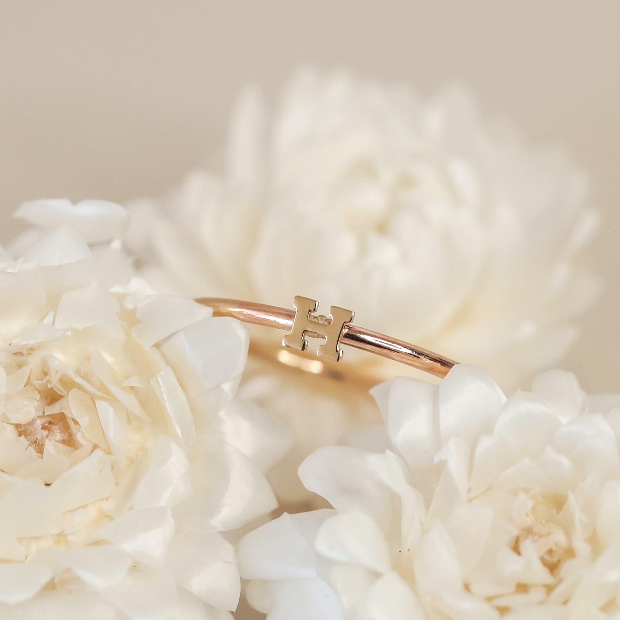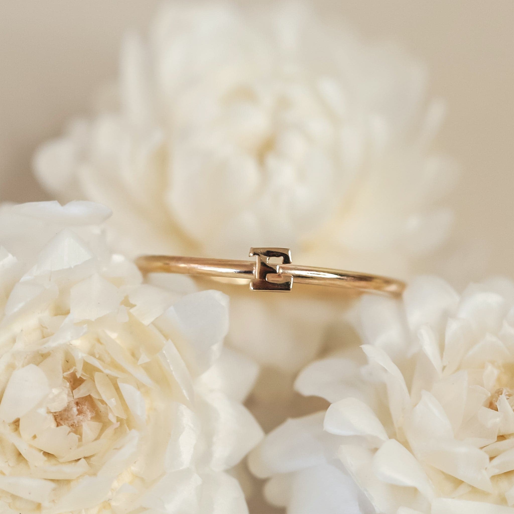 A timeless addition to any ring stack. The Initial Ring is a favorite and you can see why. With its simple silhouette and tasteful font, this ring is perfect for you or to be given as a gift.