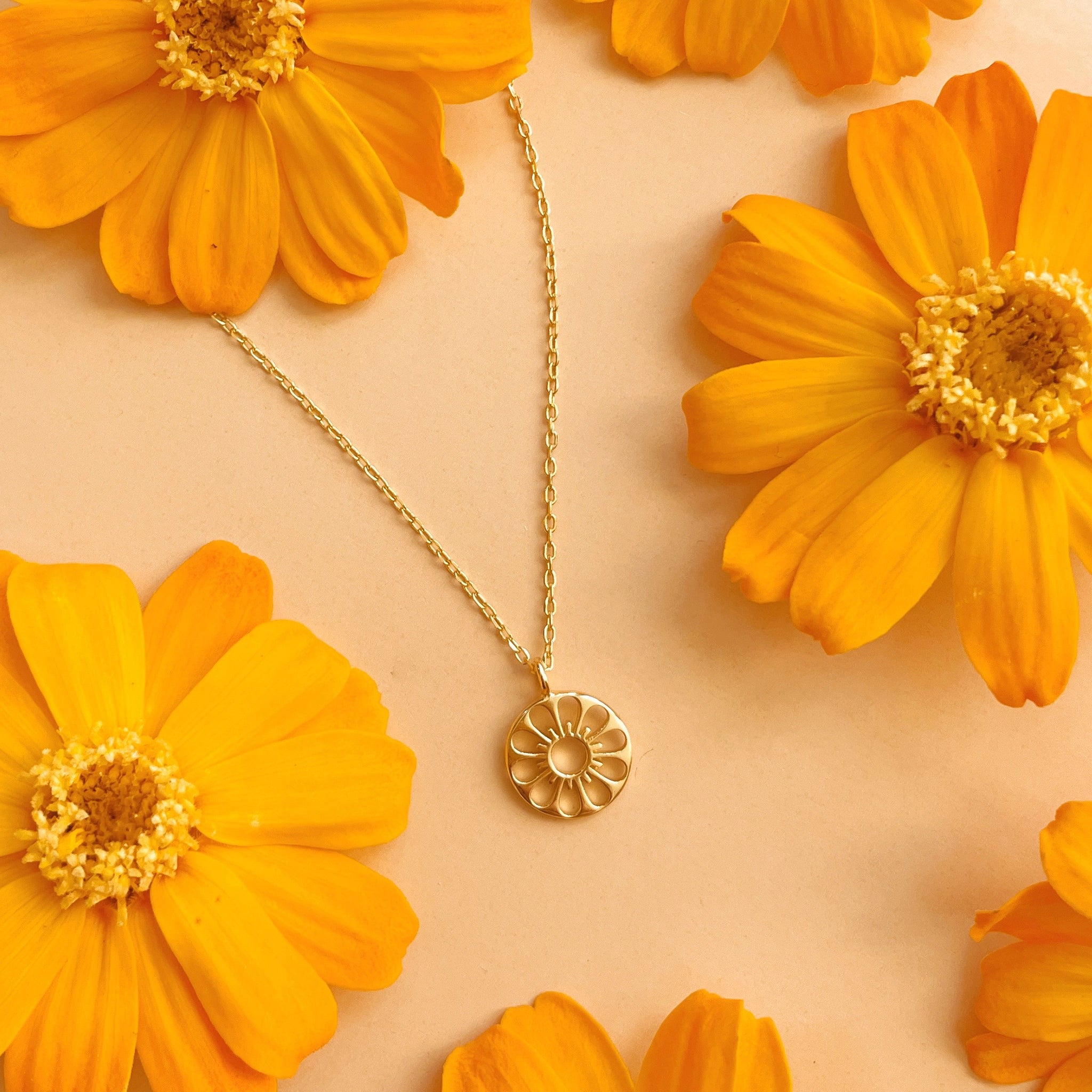 The Daisy Necklace the perfect addition to your favorite necklace stack or a sweet gift for the favorite guy or gal in your life. Designed in house by our very own Sunshine Studios, we're so proud of these gold vermeil necklaces that combine our love for 70's beach culture and dainty jewelry.