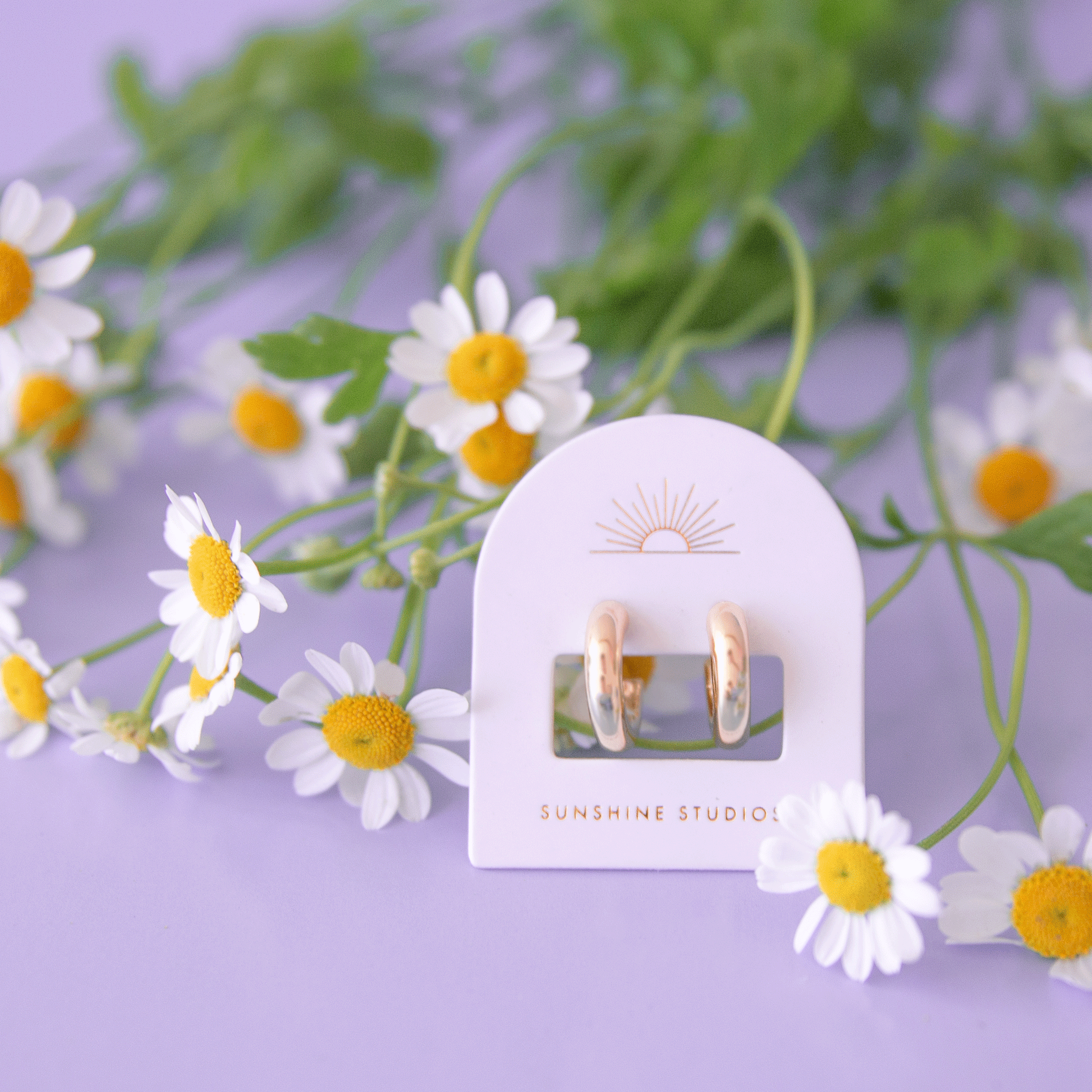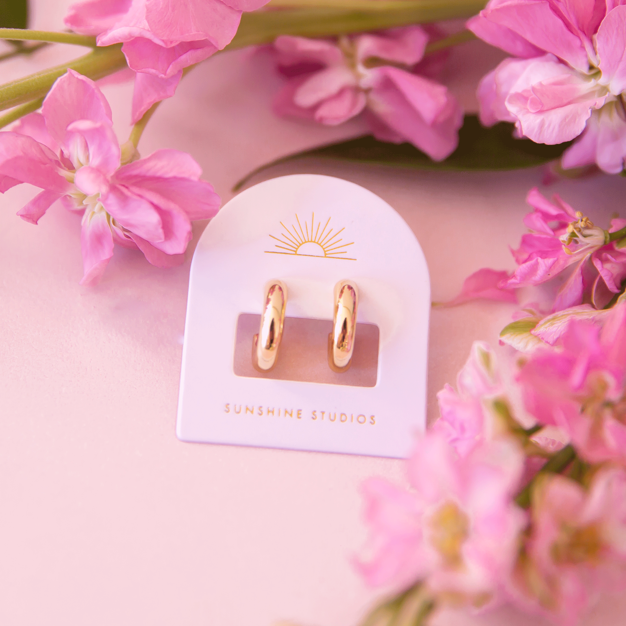 Introducing the Dakota Hoops! These chunky gold hoops are the perfect addition to your jewelry collection! Take your style up a notch and pair these with any outfit to instantly elevate your outfit. Available in two sizes for your styling convenience, add some statement making sparkle to your look today!
