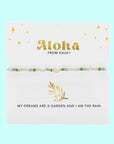 The Mokihana Berry and its lei are culturally and symbolically significant in Hawaiian traditions, particularly on its home island of Kaua‘i. Representing the uniqueness, resilience, and deep connection to nature that are integral to the ‘Aloha’ way of life, carry the spirit of the Mokihana Berry as a talisman and memento of the Garden Island. This stunning aqua blue beaded bracelet makes the perfect gift or addition to your jewelry collection.