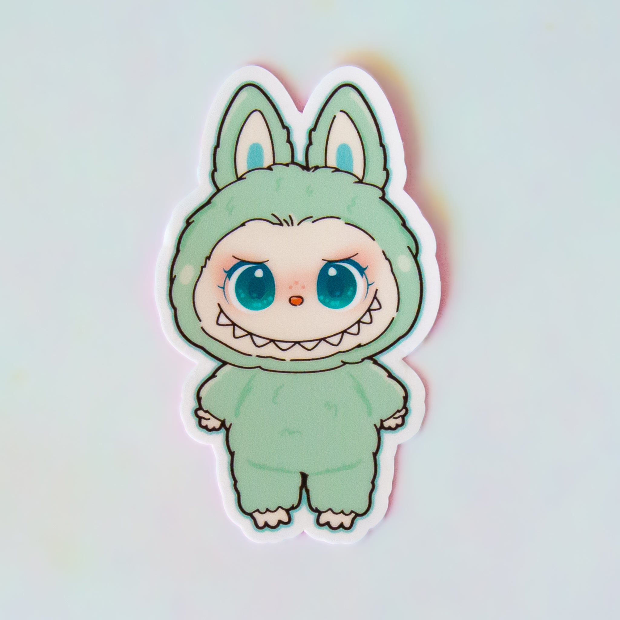 Add a splash of fun with the Pastel Green Labubu Sticker! This vibrant, high-quality vinyl decal is perfect for brightening up your laptop, water bottle, or any favorite spot. Durable and playful, Labubu brings a cheerful vibe wherever you stick it. Let your personality shine with a pop of green!