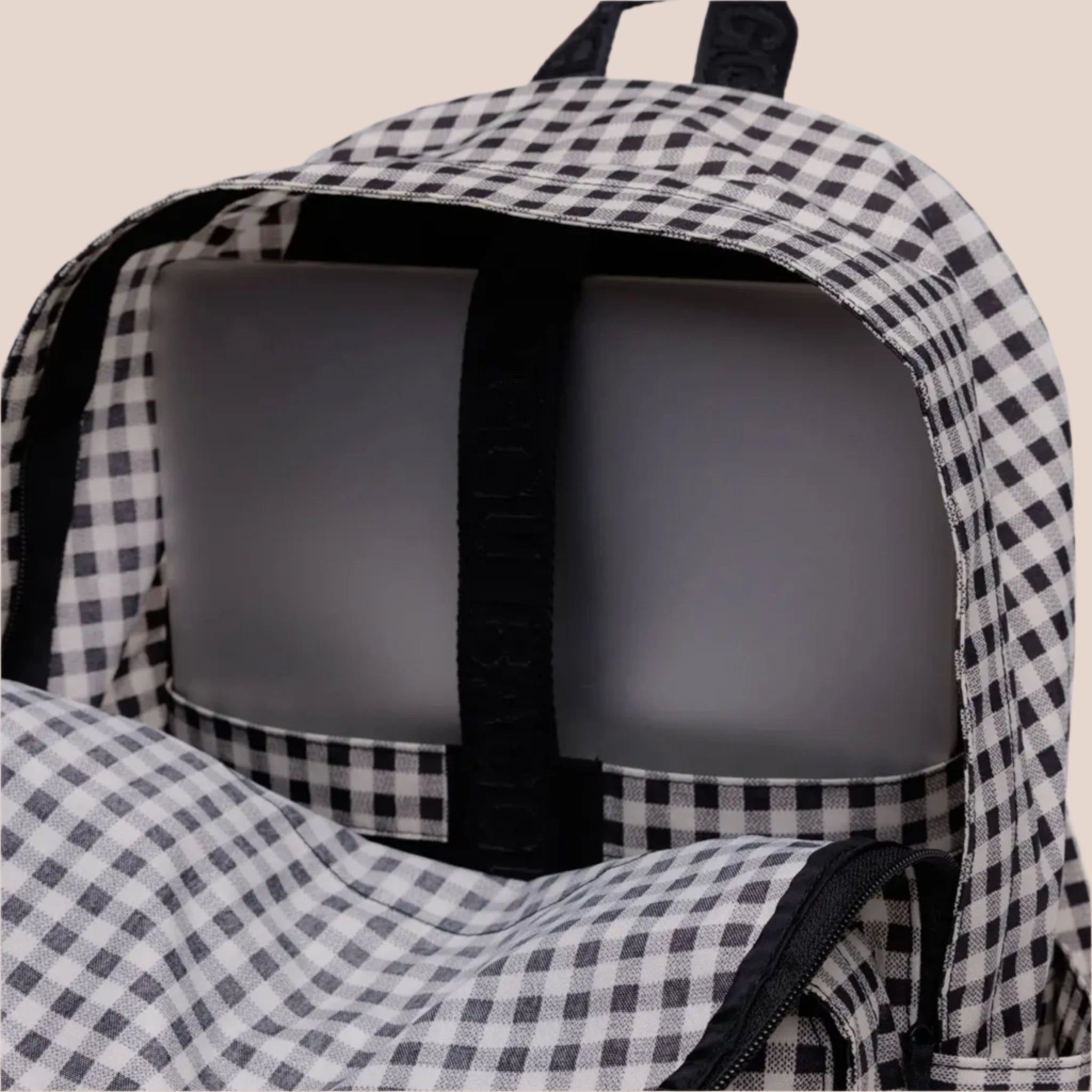 Large Nylon Backpack | Black + White Gingham