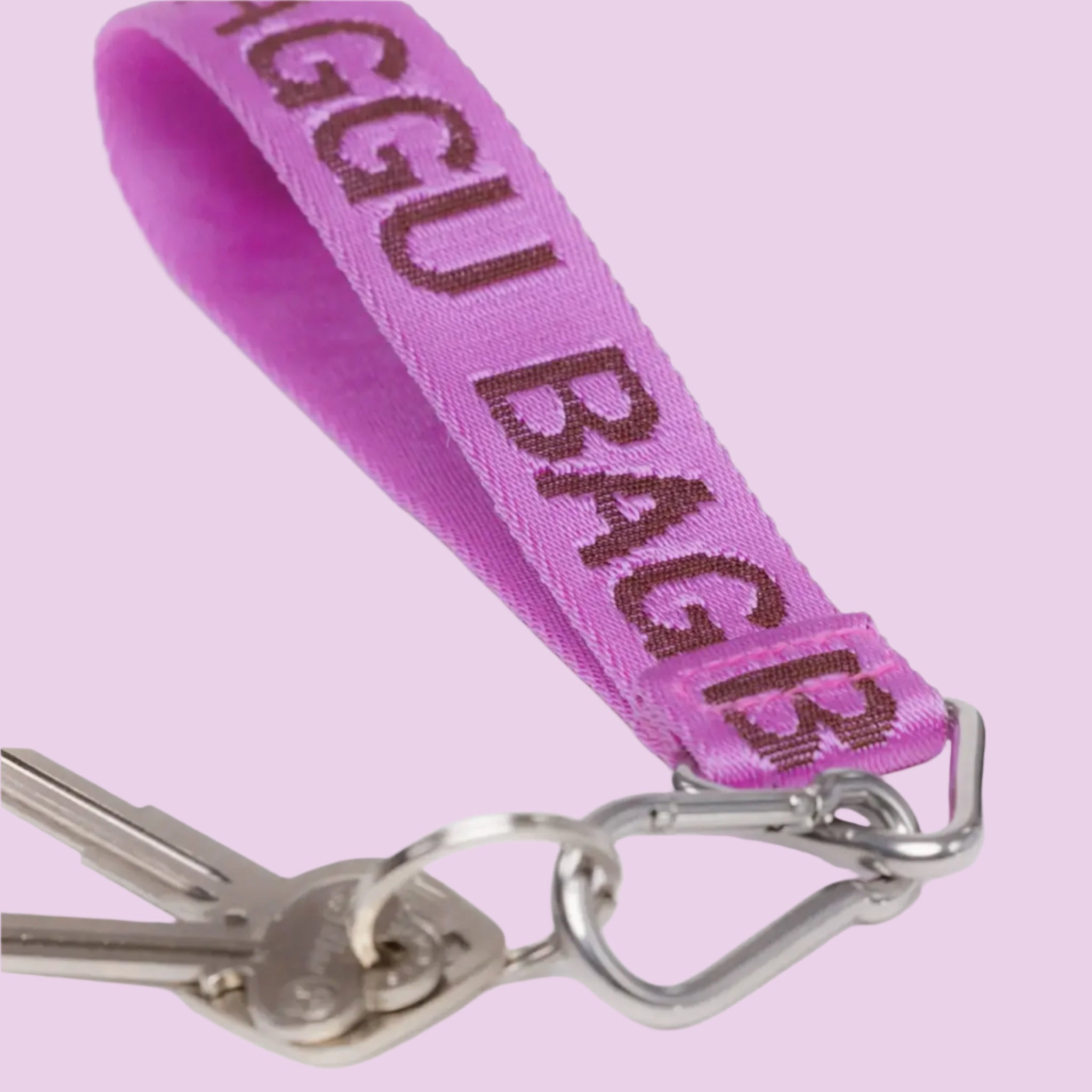 Easily jazz up your bag or keep track of your keys with this Pink Logo Keychain. No more endless searching - just snap on and show off your unique style!