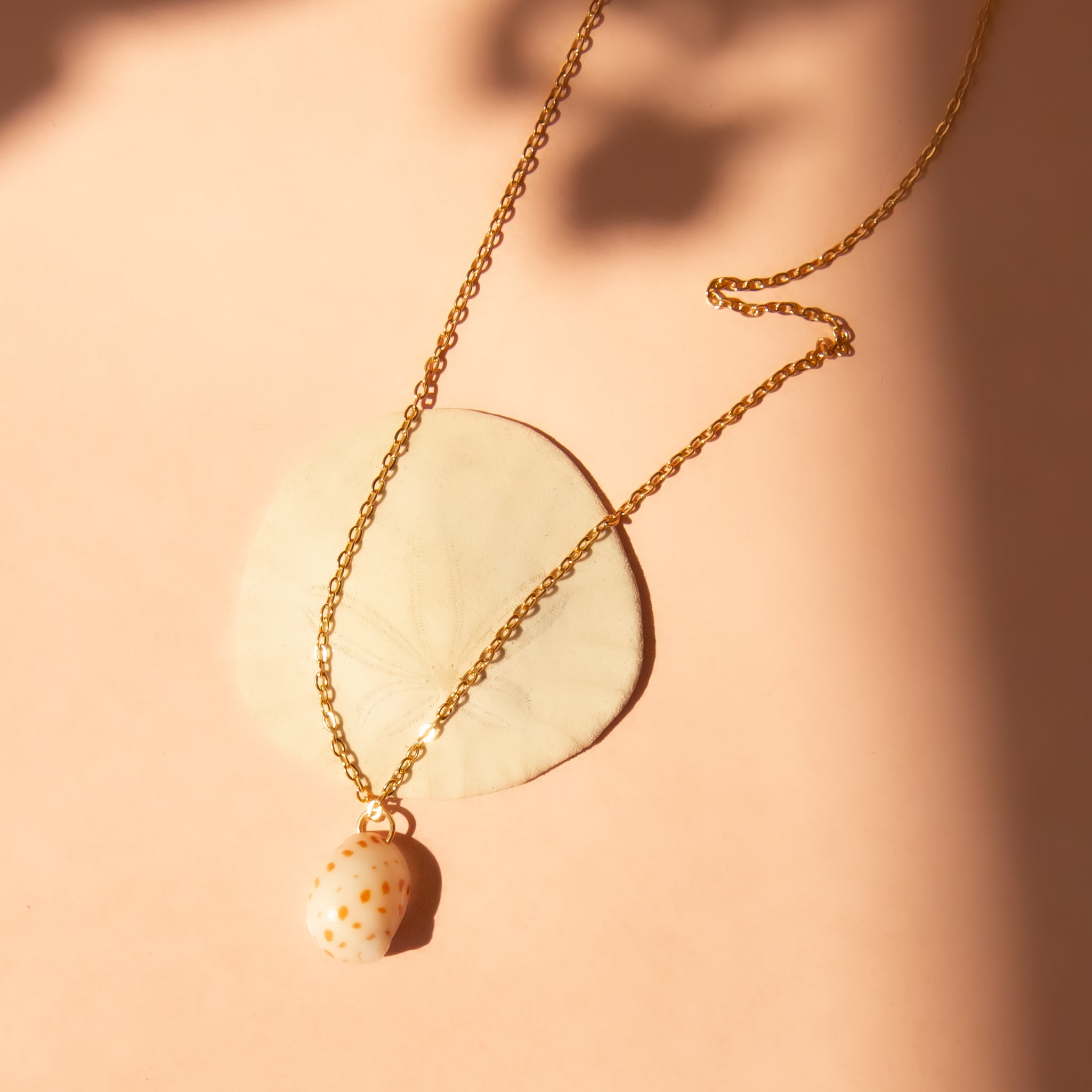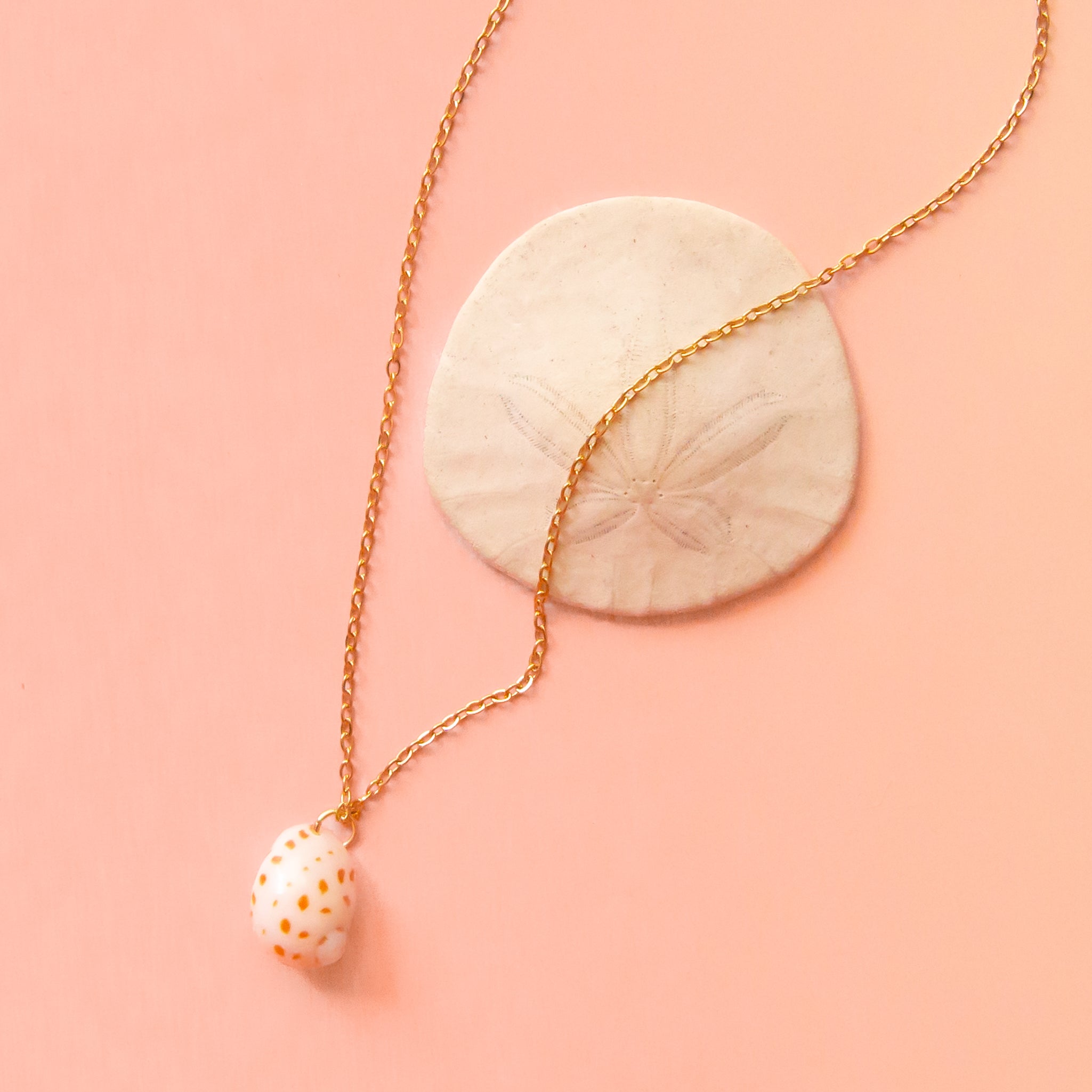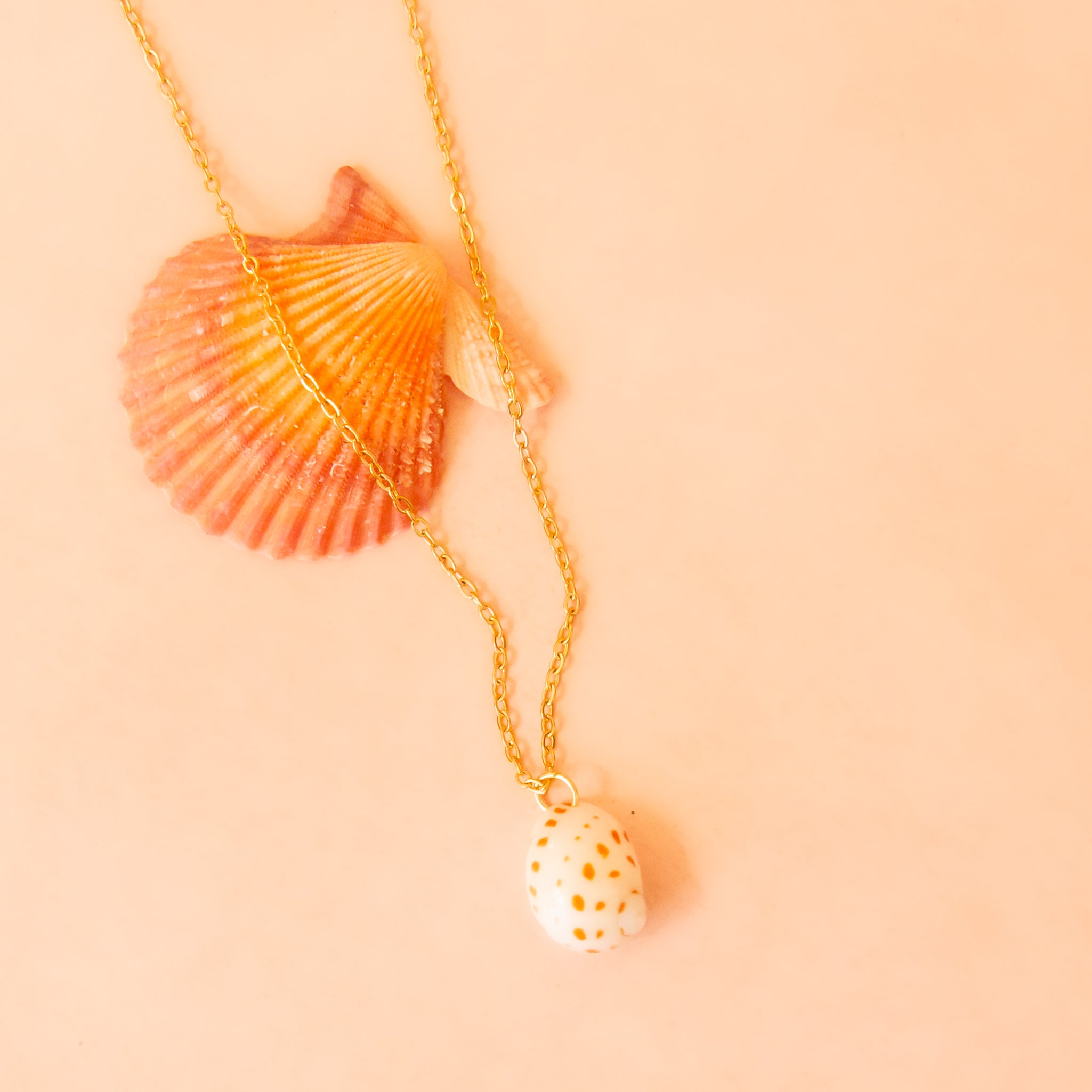 Dive into ocean-inspired style with our whimsical Mermaid Necklace! This treasure features a charming spotted shell that looks like it was plucked straight from a mermaid's secret collection. Dangling from a shimmery gold chain, it's the perfect splash of fun for beach days, pool parties, or whenever you're feeling those mermaid vibes. Who says you can't take a piece of the ocean wherever you go?