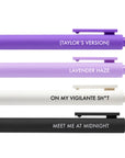 A must-have stationery essential for all our Swifties out there. Perfect as a gift for you or a loved one, we're obsessed with the Midnights Gel Pen Set featuring four different colored gel pens with Taylor Swift's Midnight album inspired quotes on each pen.
