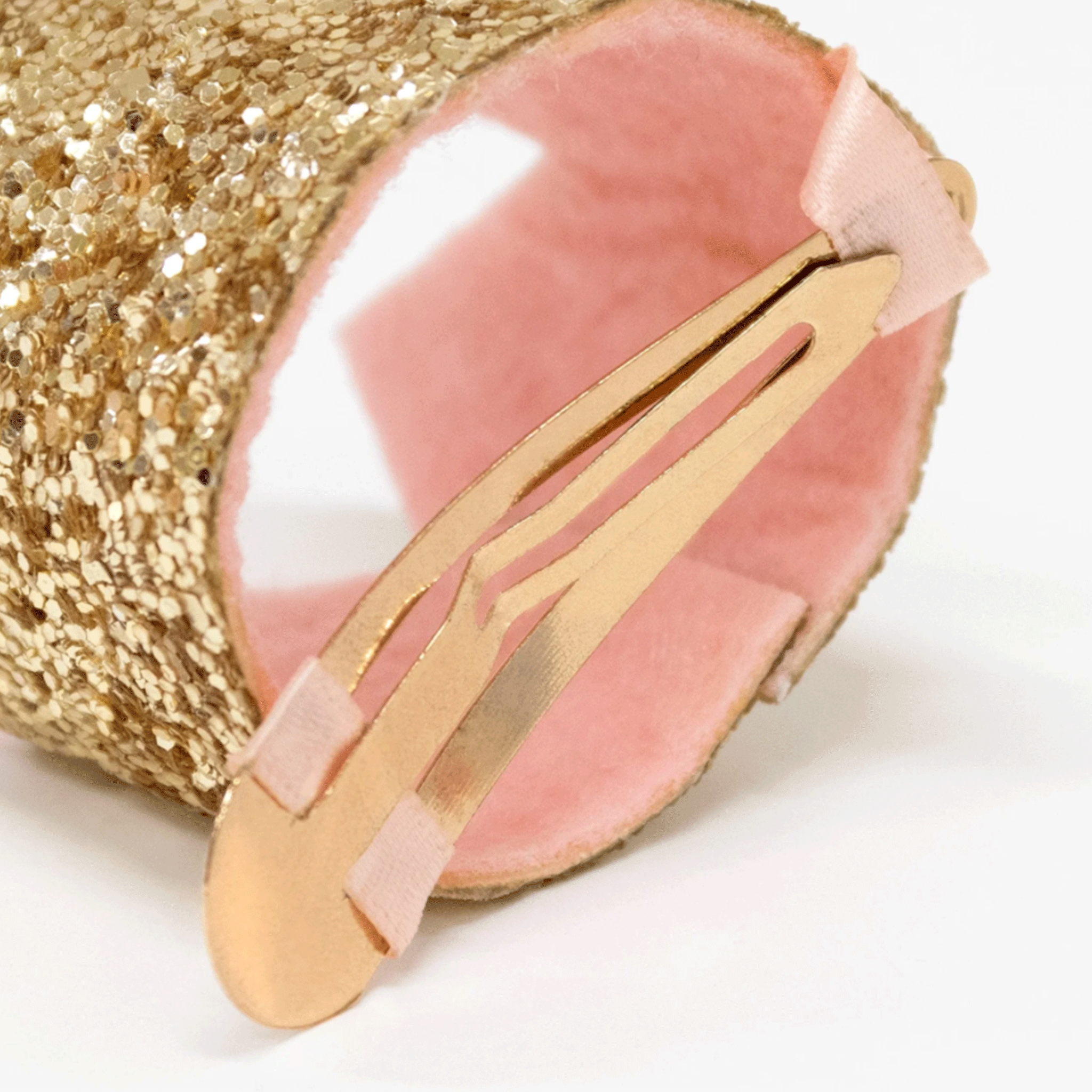 Embrace your inner princess by sporting this fantastic gold glitter crown hair clip. Whether you're adding it to a full costume for a finishing touch, or just want to spice up an everyday outfit with a quirky accessory, this crown is sure to turn heads!