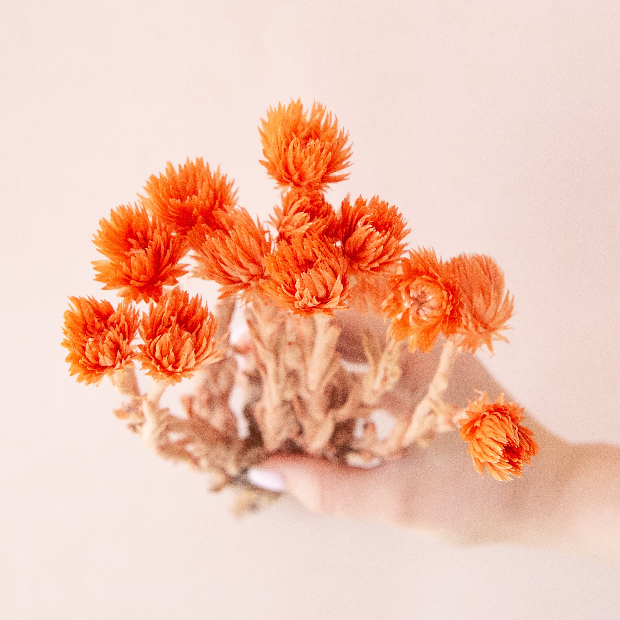 Elevate any space with our Mini Silver Daisy in Coral. The dried silver daisy florals add a touch of whimsy and the coral brings a pop of color. Wispy and delicate, this arrangement is sure to add a charming and dreamy touch to any room!