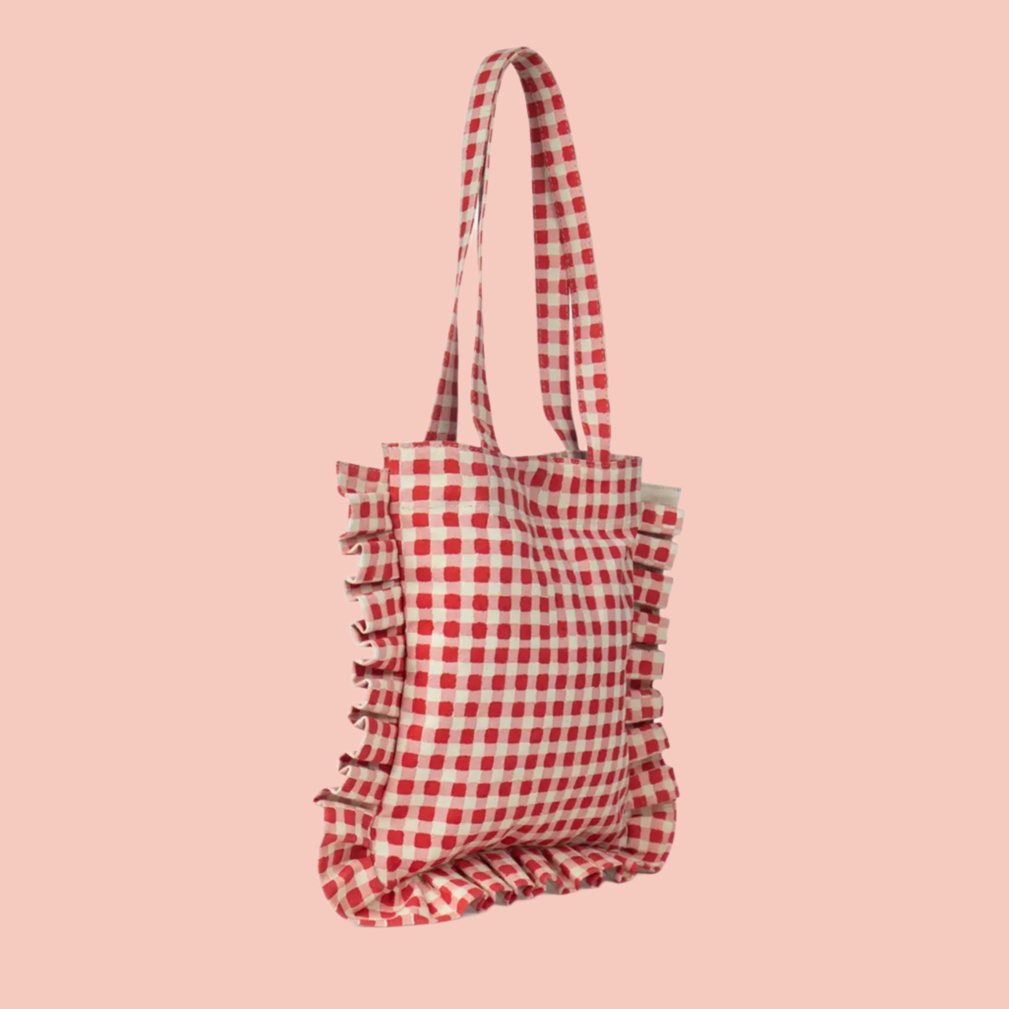 An easy-to-wear statement piece handmade from hand block-printed cotton canvas with frill detailing. Perfectly practical for everyday use, carrying all your essentials with a unique, playful twist!