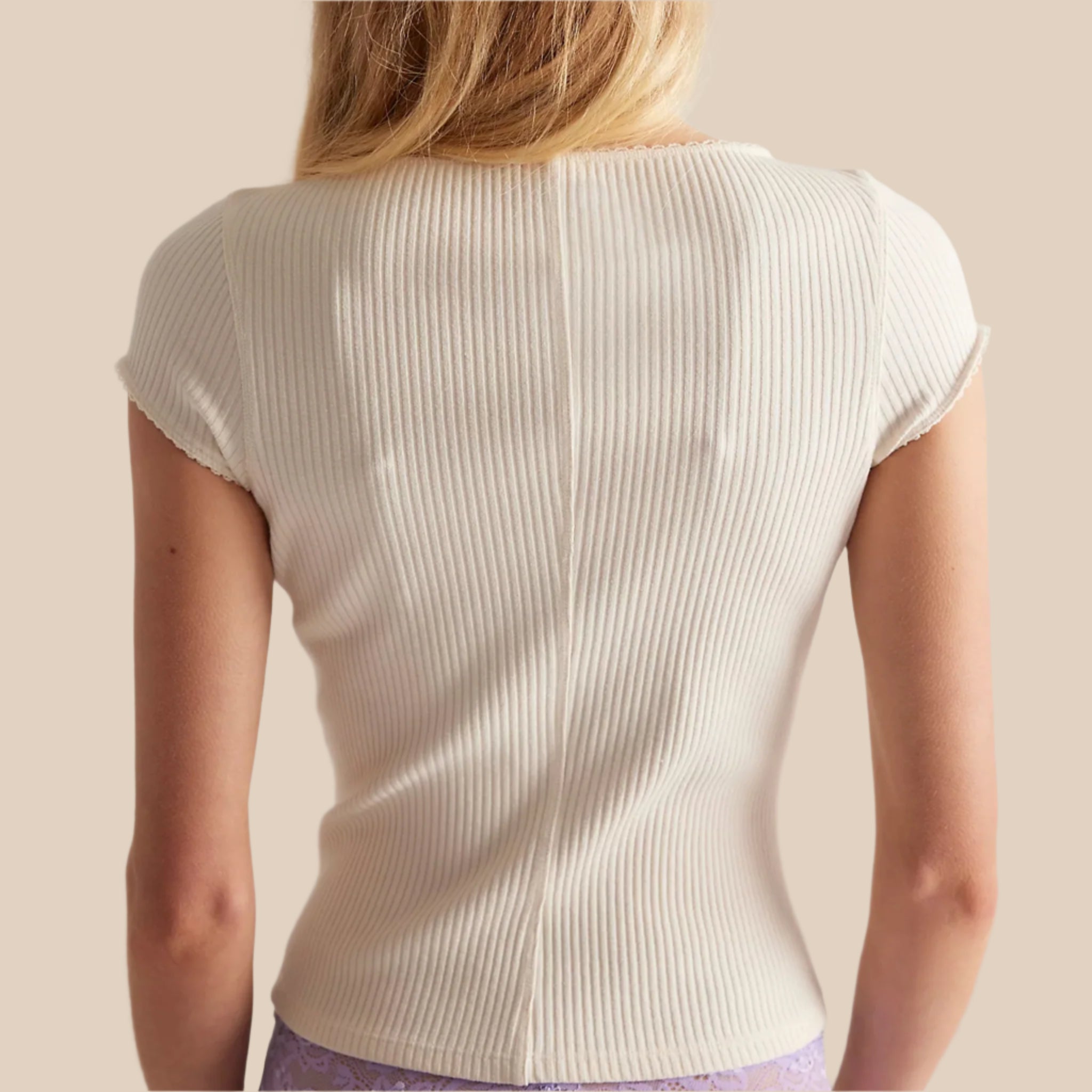 This adorable ivory cardigan brings a playful twist to a classic look. Crafted from a cozy ribbed fabric, it hugs you just right with its shrunken fit and charming short capped sleeves. Buttoned all the way up the front, it’s perfect for layering or wearing on its own to add a sweet, stylish touch to any outfit.