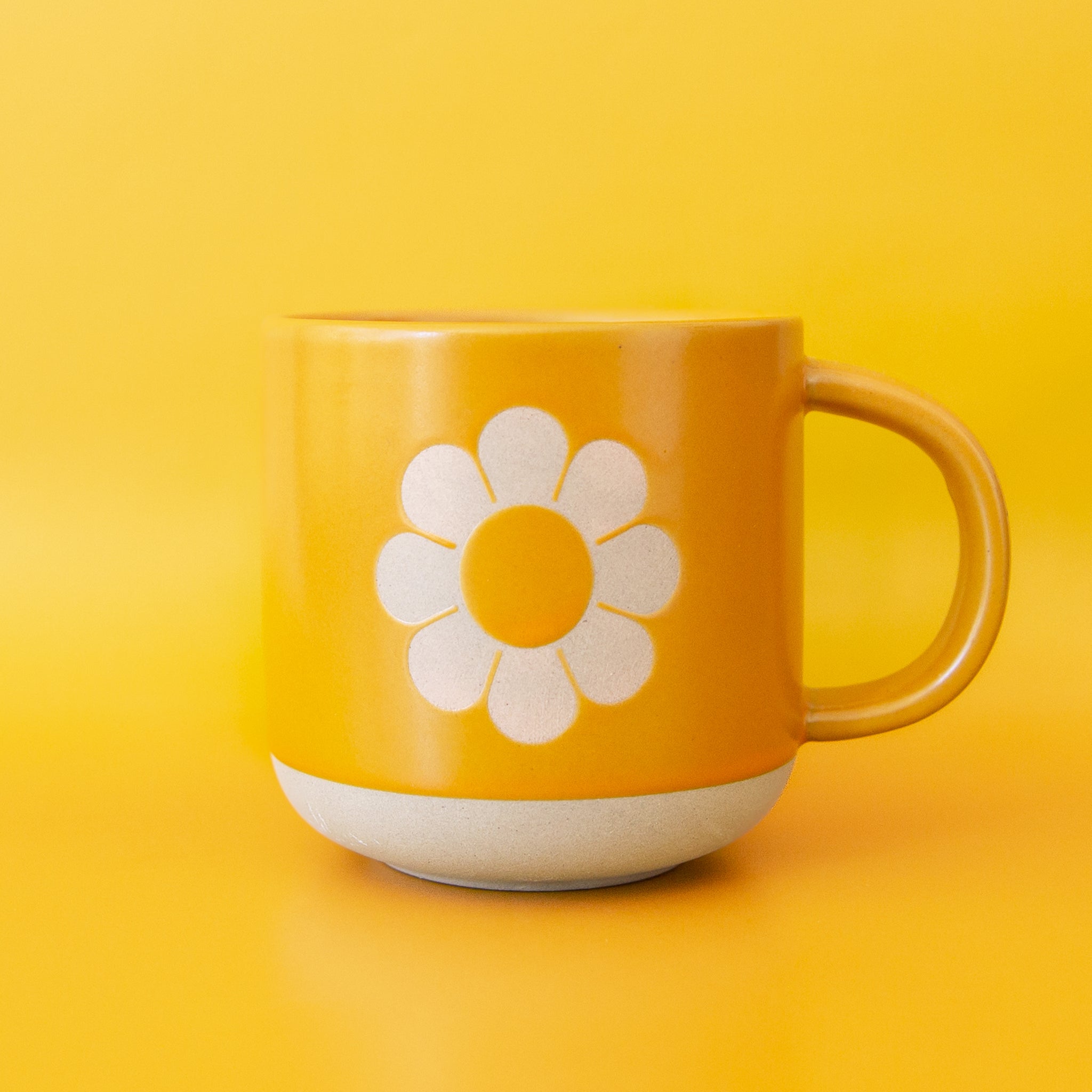 Retro Ceramic Mug | Flower Sunshine Yellow