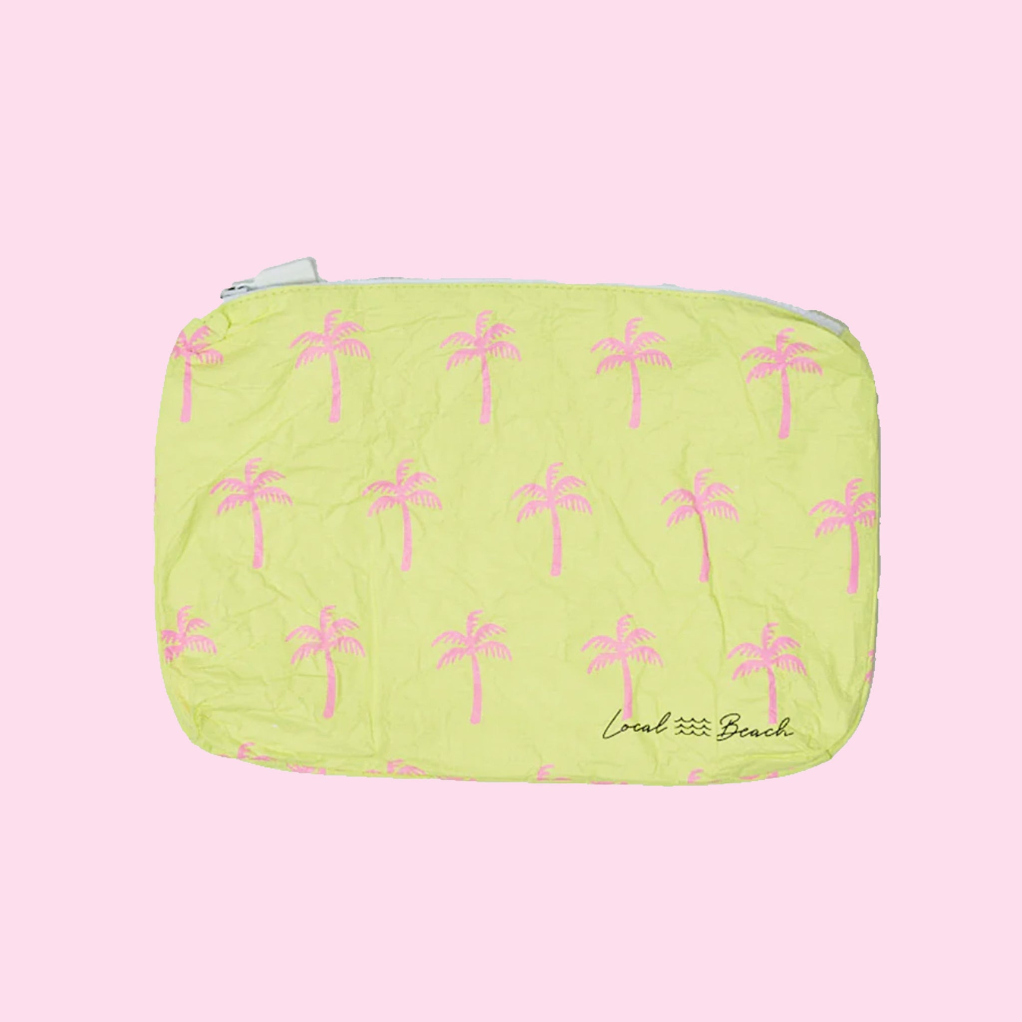 Introducing the Neon Palms Printed Pouch in the shade Yellow/Pink. This adorable Tyvek fabric bag makes the perfect organizer for your travel toiletries, make up, wet bikinis, snacks, pens & pencils and anything else you can think of that you want to pouch in your day to day lives. Beach ready, Sand Tested, and Stays More Dry