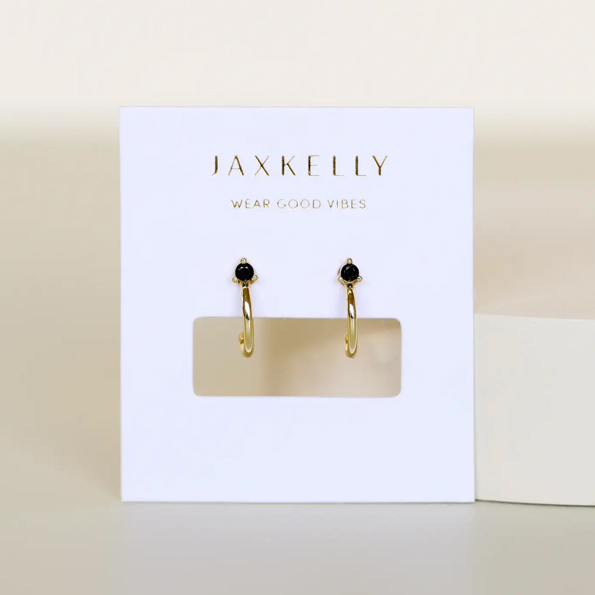 The Open Mini Hoop Earring in Black by Jax Kelly adds a burst of style with its mini black cz stone and hugs the ear for a versatile wear.