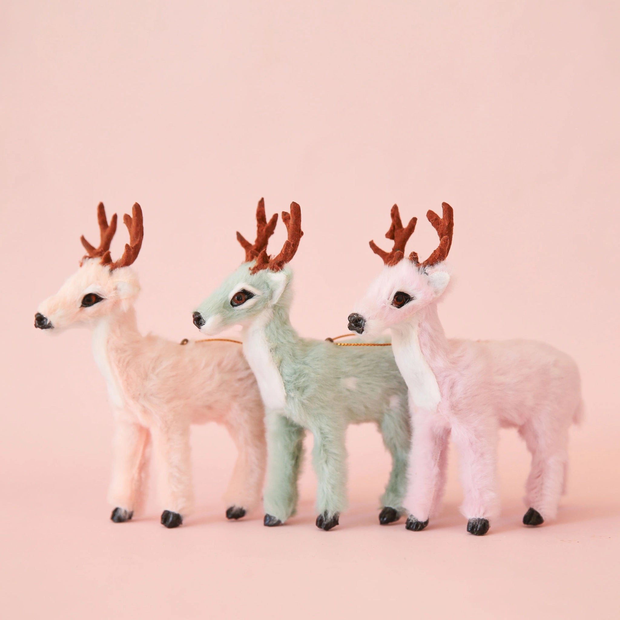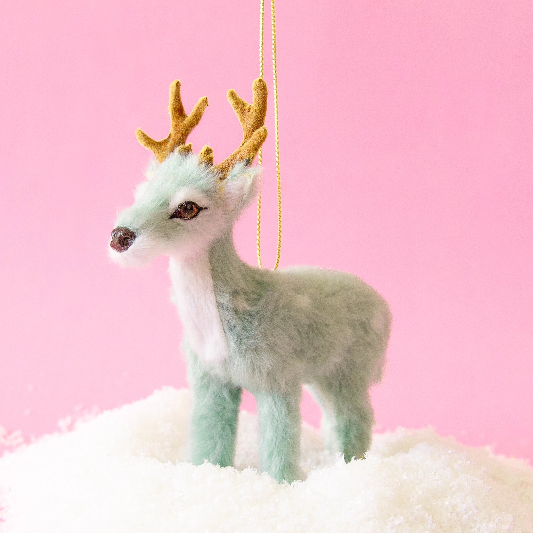 Bring a little bit of holiday cheer to your home with our Fur Reindeer Ornament in the shade Mint! Available in four festive colors, this woodland pal is sure to be a hit with everyone. These furry friends come in three different sizes so you're sure to find one that your tree would love. Hang one (or more!) on your tree this holiday season for that extra bit of seasonal spirit!