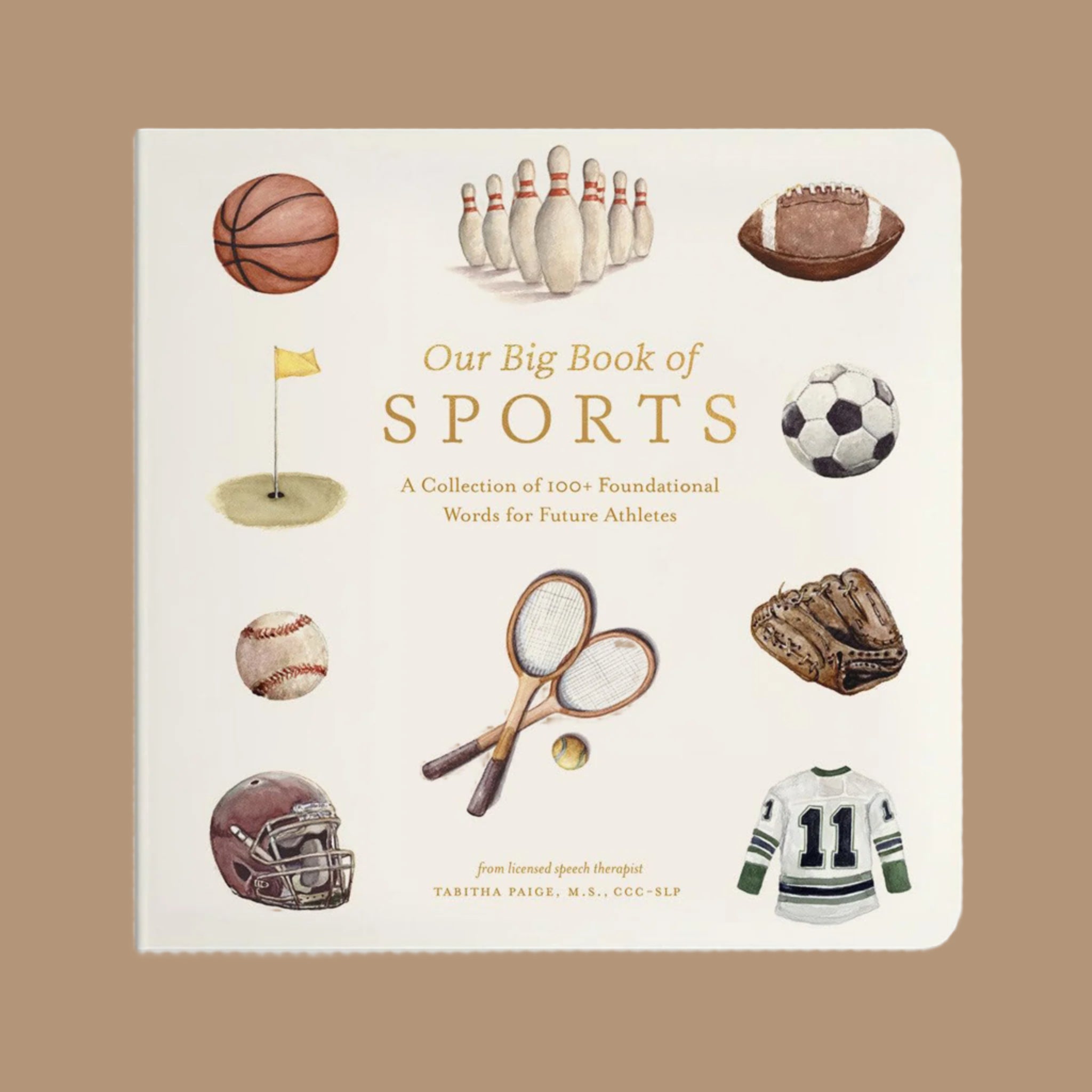 Designed by a professional watercolor artist and licensed speech therapist, Our Big Book of Sports includes charming watercolor illustrations and foundational words that will help you build your child's vocabulary. The durable materials and small book size also make them perfect for your baby's little hands.