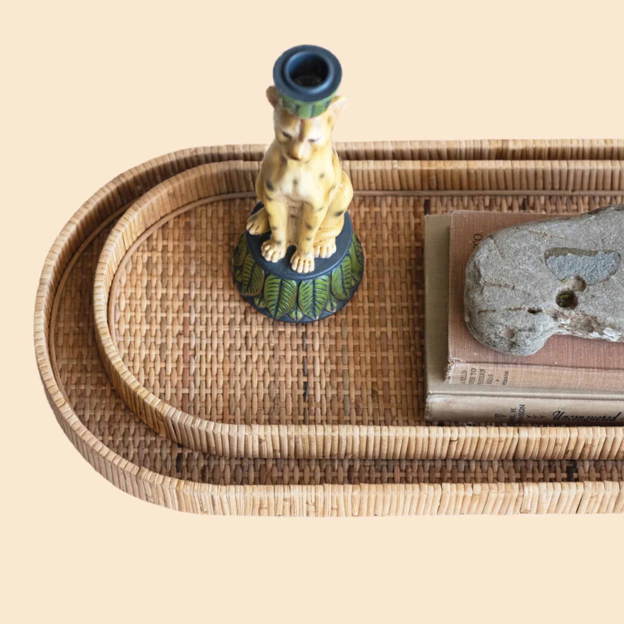 Elevate your space with our Oval Rattan Tray! Available in two sizes, its elegant design adds a touch of natural beauty to any room. Perfect for organizing and displaying your belongings, this tray brings both style and functionality to your home.