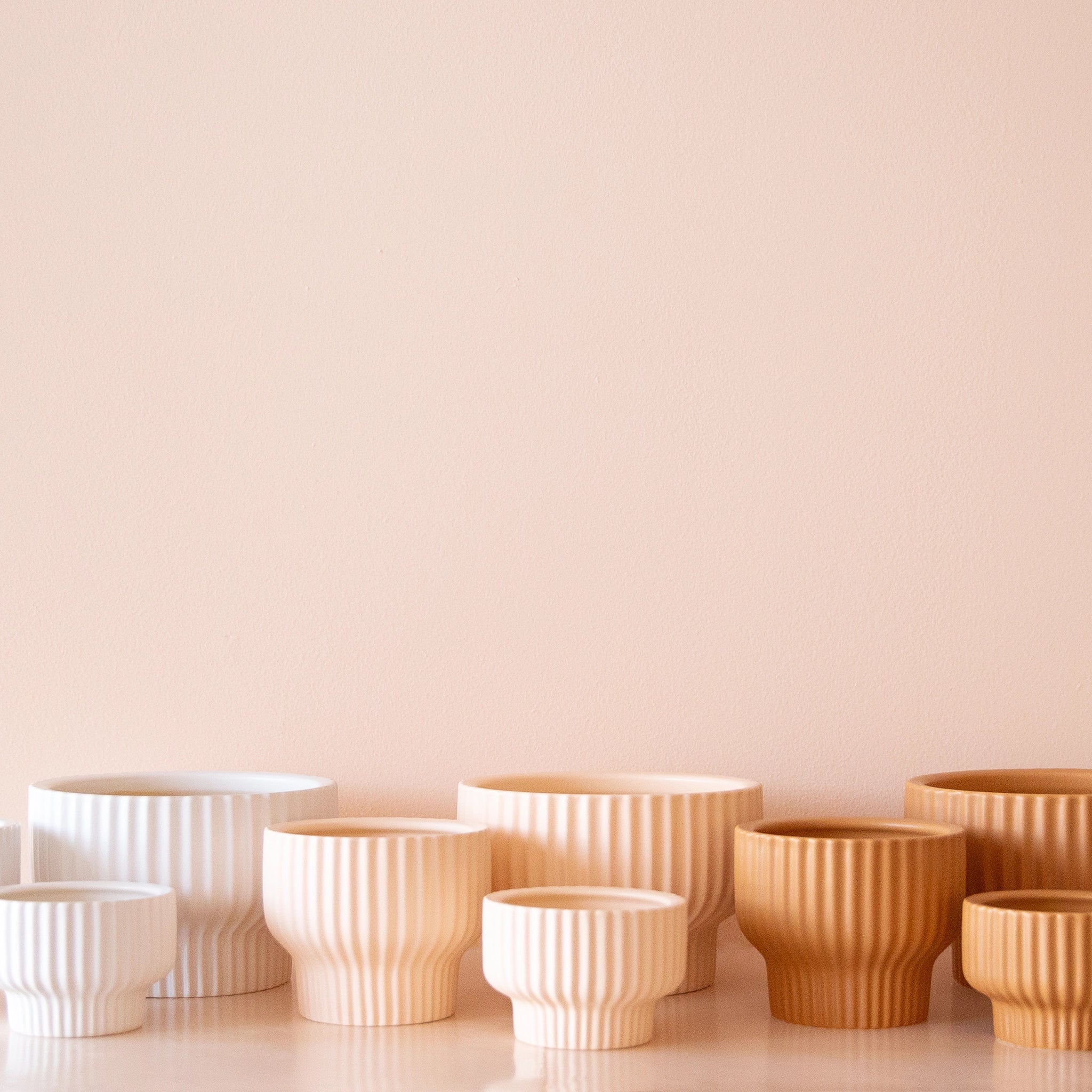 Perfect for succulent + cacti arrangements, a small plant and more, the Presley Pedestal Planter in the shade Ballerina features a fluted pedestal that gives it a stylish texture that's just enough to stand out from the crowd!