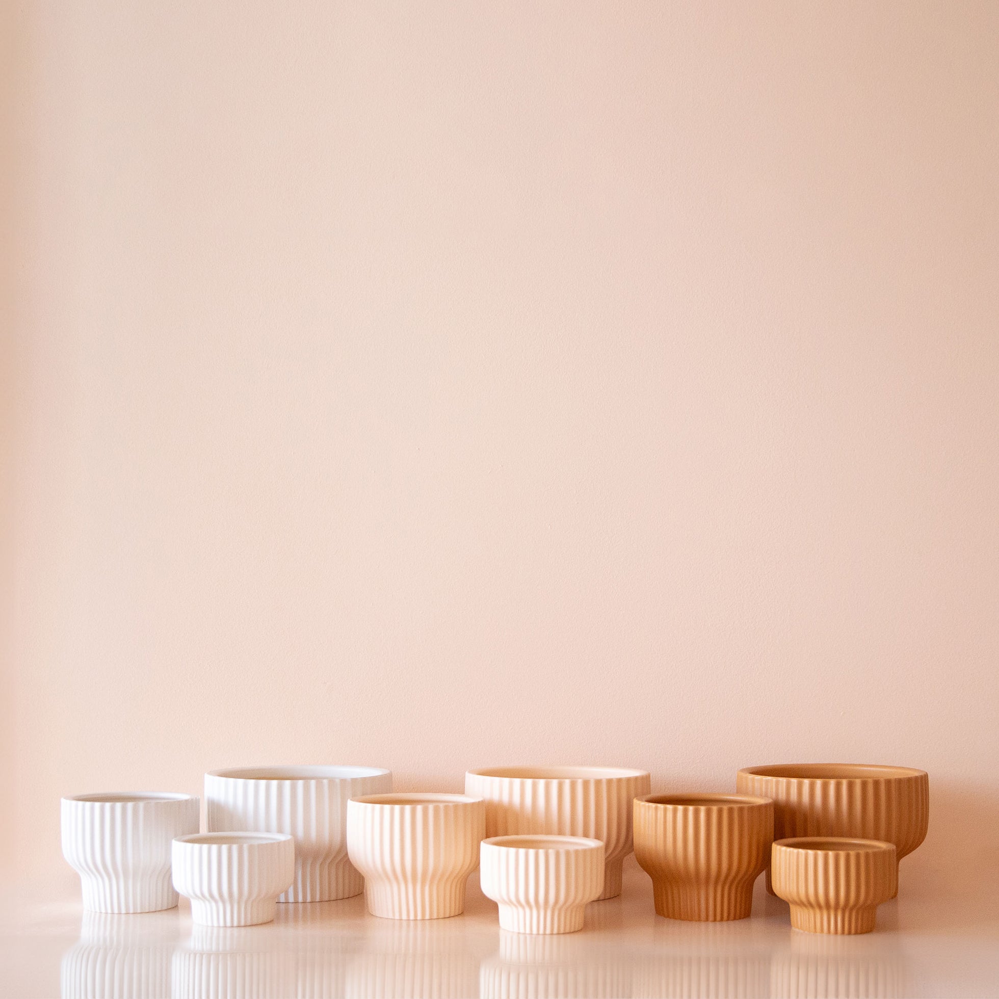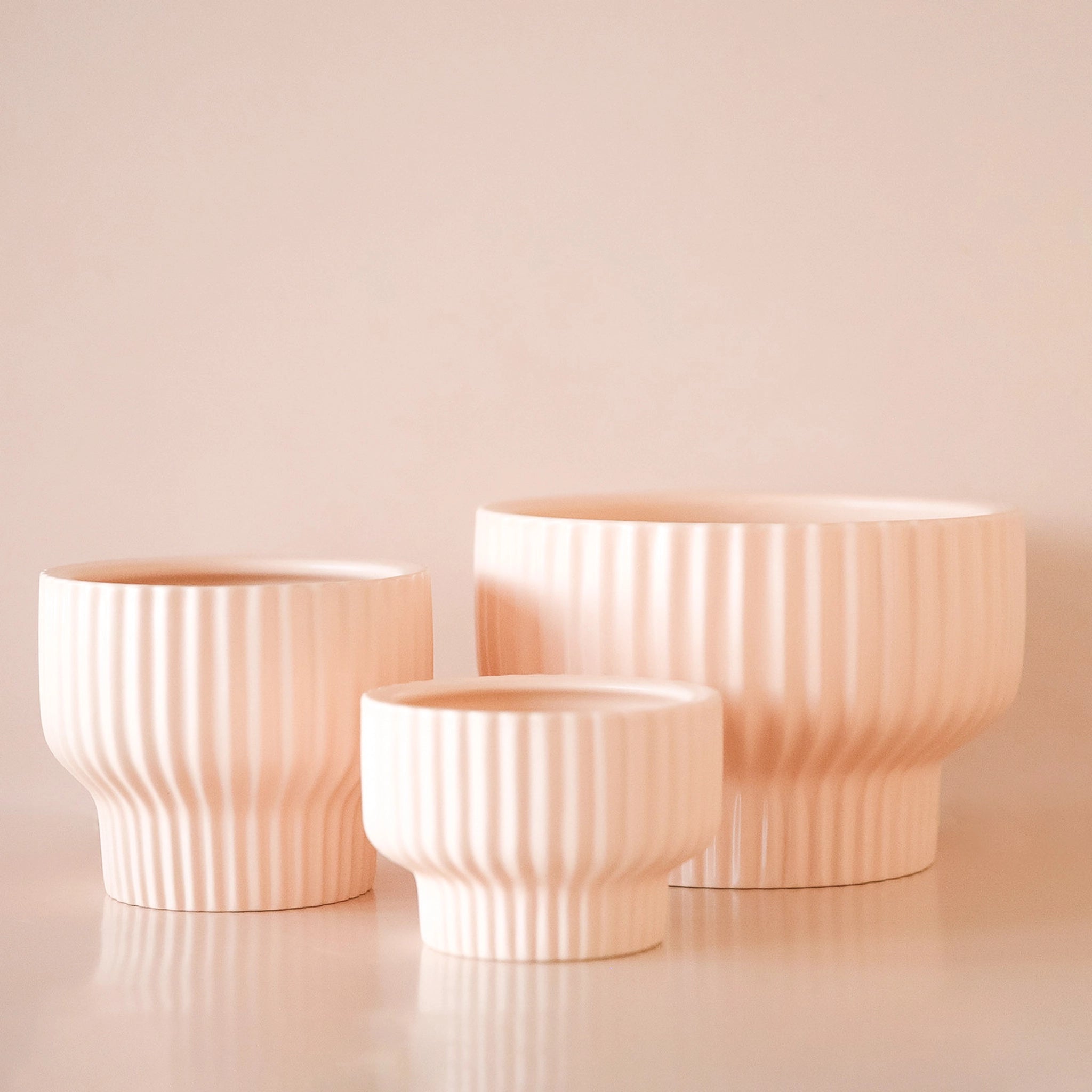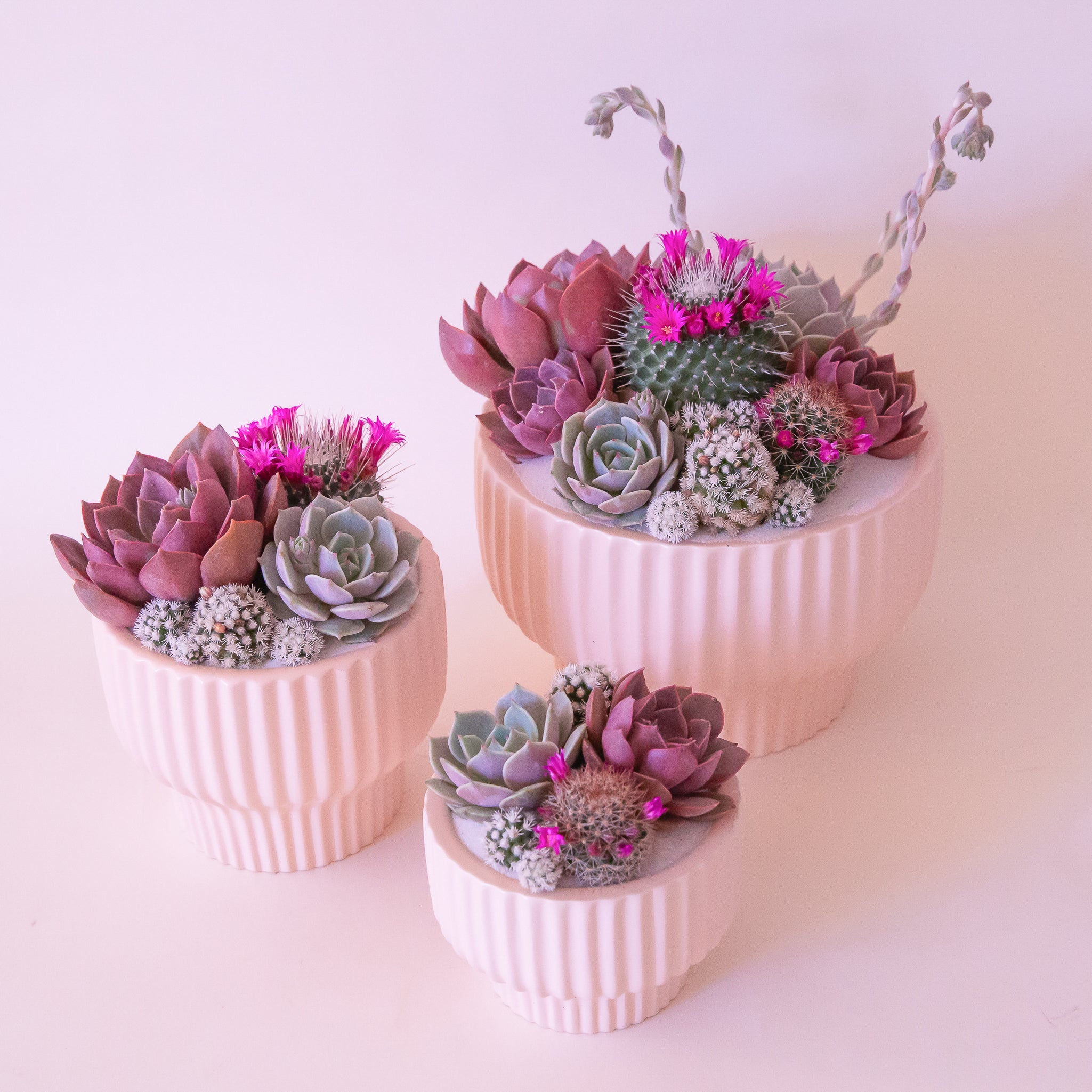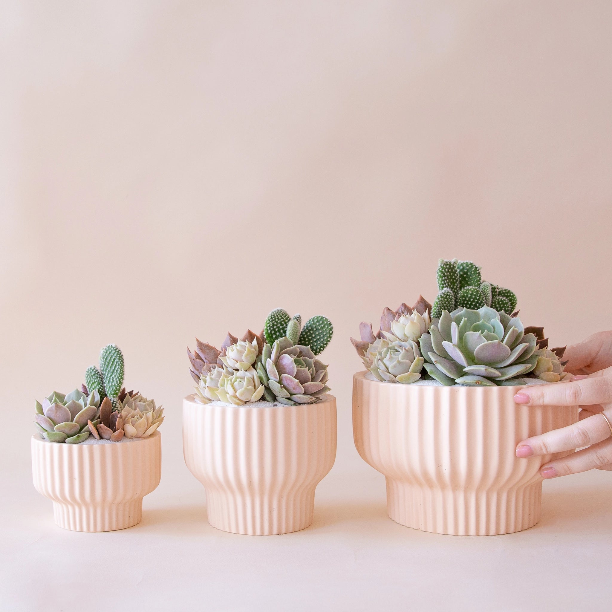 Perfect for succulent + cacti arrangements, a small plant and more, the Presley Pedestal Planter in the shade Ballerina features a fluted pedestal that gives it a stylish texture that's just enough to stand out from the crowd!