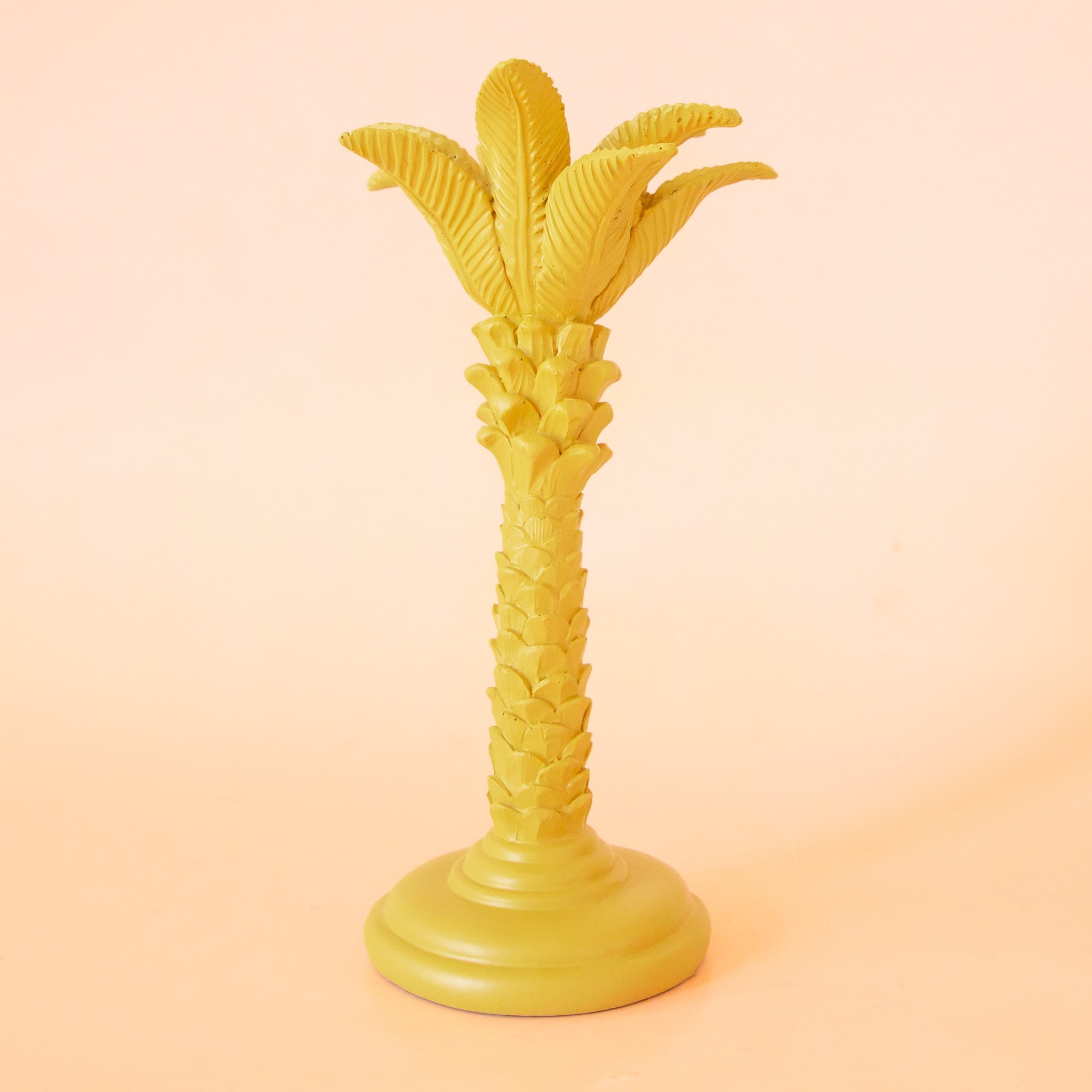 Transform any room into an island paradise with the Palm Tree Pineapple Taper Holder in Yellow! Experience the warmth and serenity of a tropical getaway with this beautifully designed candle holder featuring a stunning palm tree. Add a touch of uniqueness to your home decor with this must-have piece.