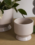 Freshen up your space with the chic, soft vibrance of the Paso Robles Pot in Tan. This cylinder-shaped, footed indoor plant pot perfectly fits a 5.5’’ or can be used for floral arrangements. With its smooth matte body & shiny glazed foot, the trend-forward color is designed to blend with all kinds of styles & colors, from neutrals to splashy hues.