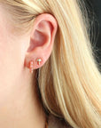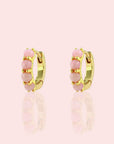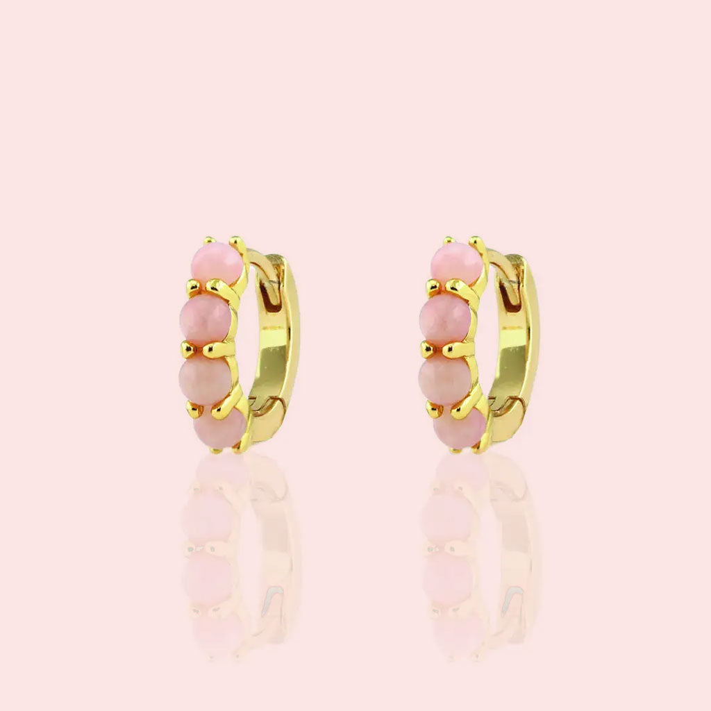 Introducing the Huggie Hoop Earrings in the shade Pink Opal. A must-have earring for your jewelry stack. Perfect as a gift or a keepsake for your own collection.