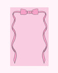 Take note with style with the Pink Ribbon Bow Notepad! This adorable notepad features a coquette coded design and a pink ribbon detail. Perfect for jotting down all your thoughts and ideas in a fun and playful way. Keep organized and show off your girly side. Perfect for gifting or unique back to school essentials!