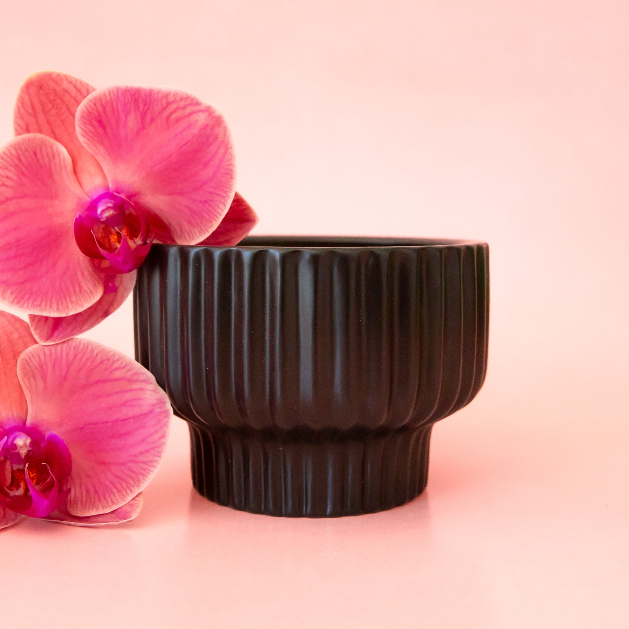 Perfect for flower arrangements, the Presley Vase in the shade Black features a fluted pedestal that gives it a stylish texture that's just enough to stand out from the crowd!