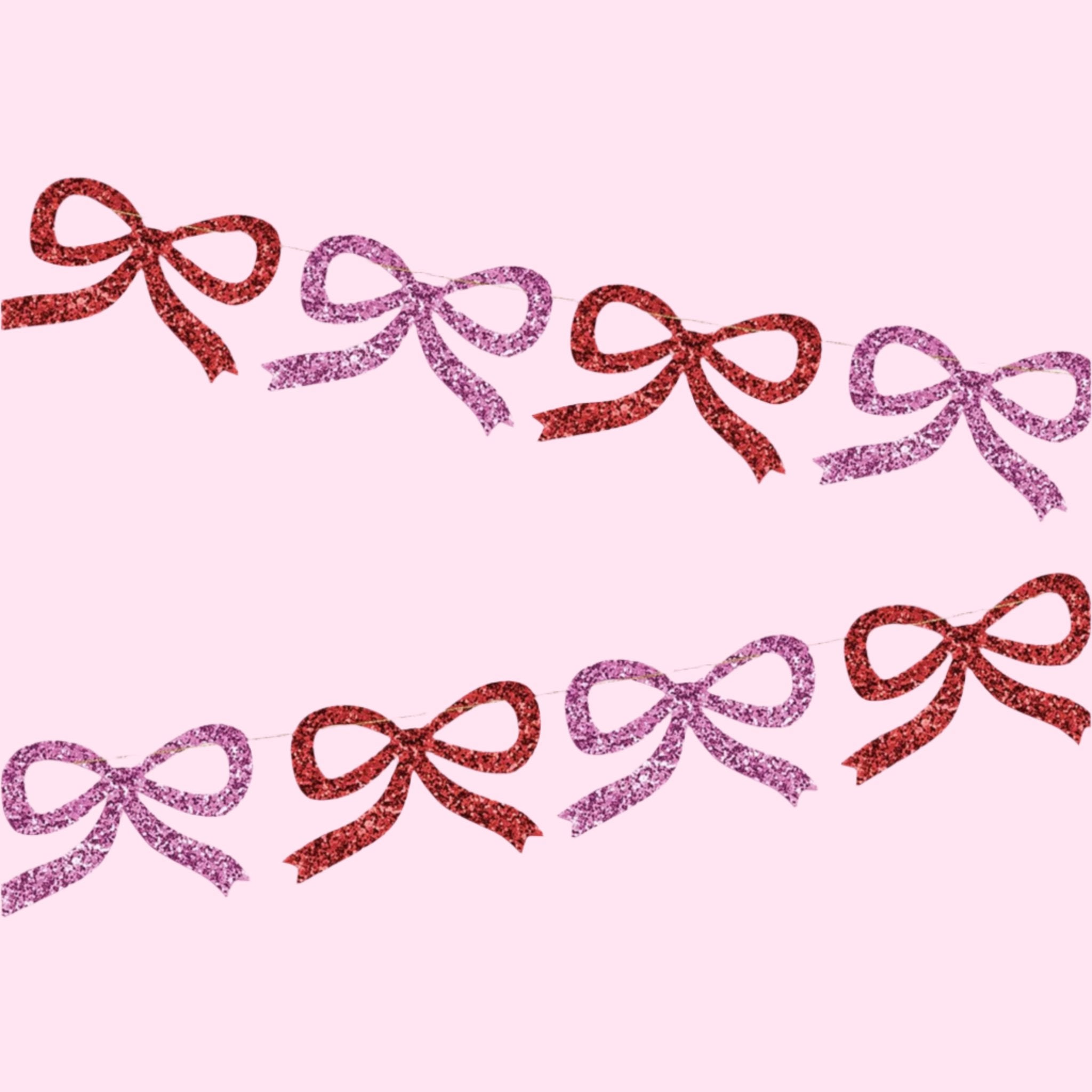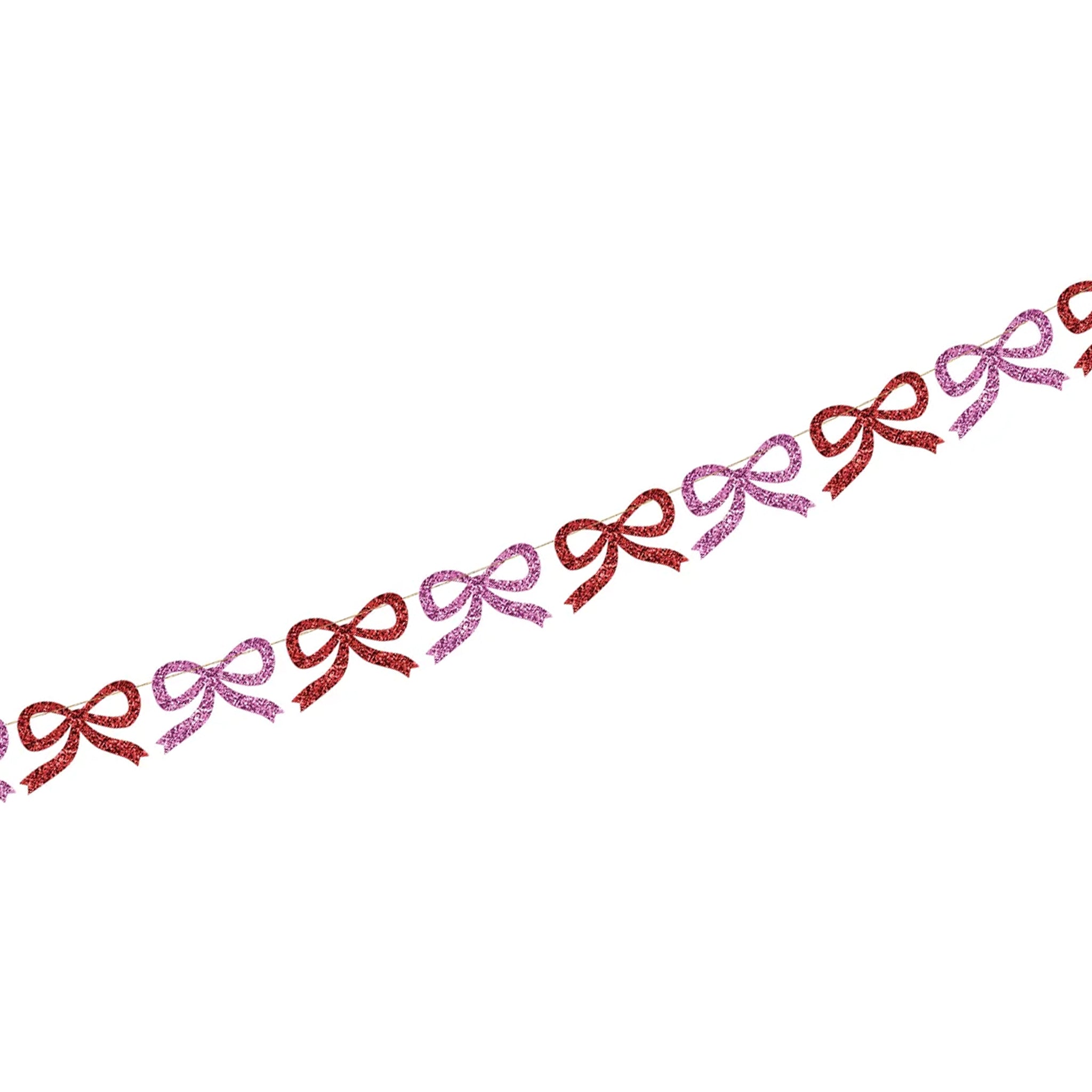 Bows are back in a big way! This elegant garland is guaranteed to add a statement look to any festive celebration. Hang it on your party table, porch, doorway or wall – wherever you want a gorgeous red and pink glitter effect. Holiday decor just got a whole lot cuter!