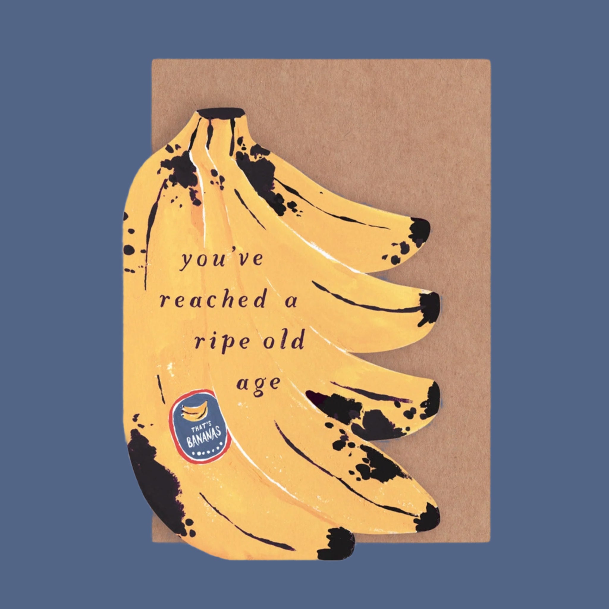 This playful banana-shaped birthday card is perfect for anyone who appreciates a cheeky joke about aging. With its fun design and blank inside, it offers plenty of room to share your own sweet message, reminding your loved one that like bananas, they only get better with time. A lighthearted way to celebrate a "ripe old age"!