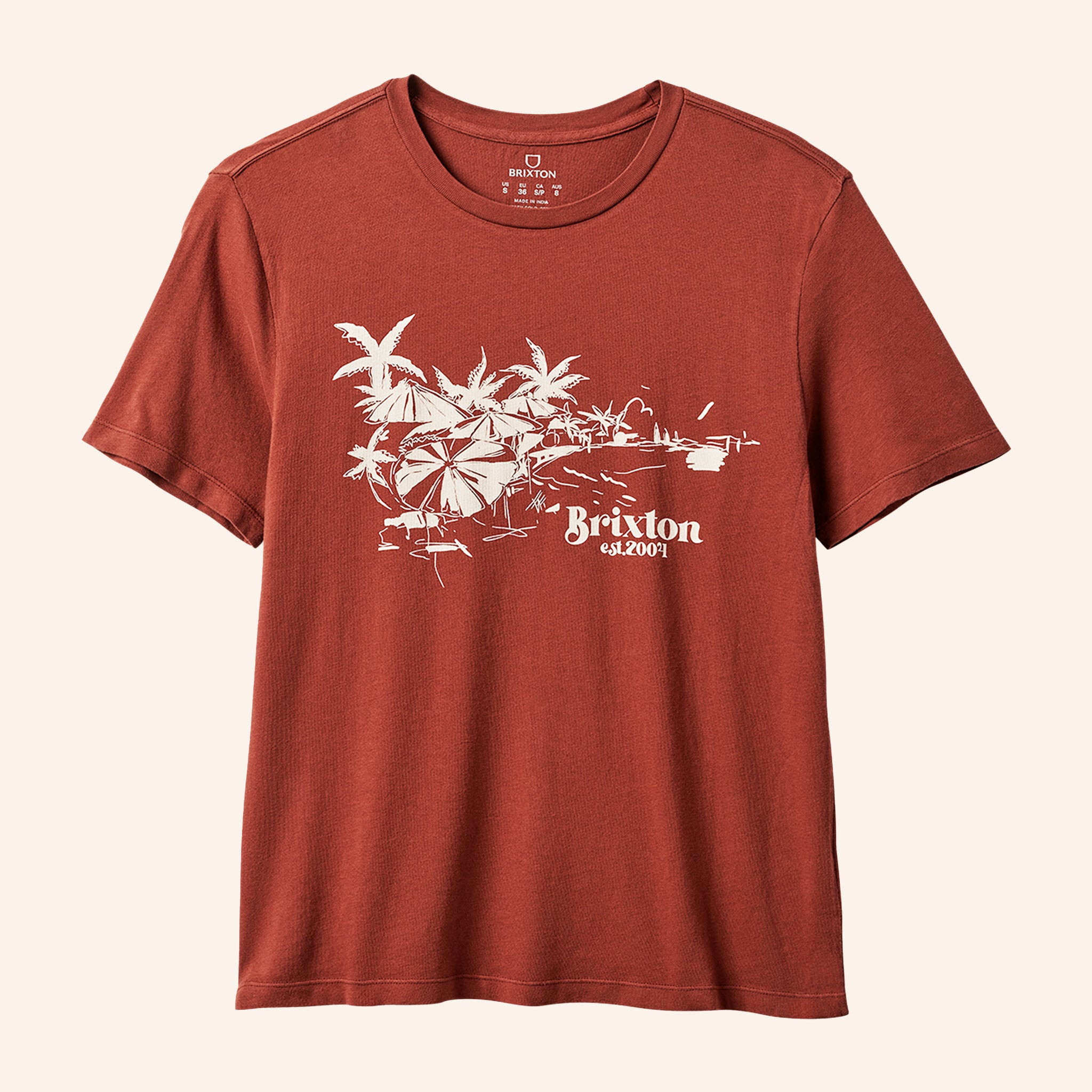 Add a touch of playful vintage charm to your wardrobe with our Riviera Vintage Crew Tee. This adorable rust colored t-shirt features a cute palm tree graphic and a classic crew neckline.