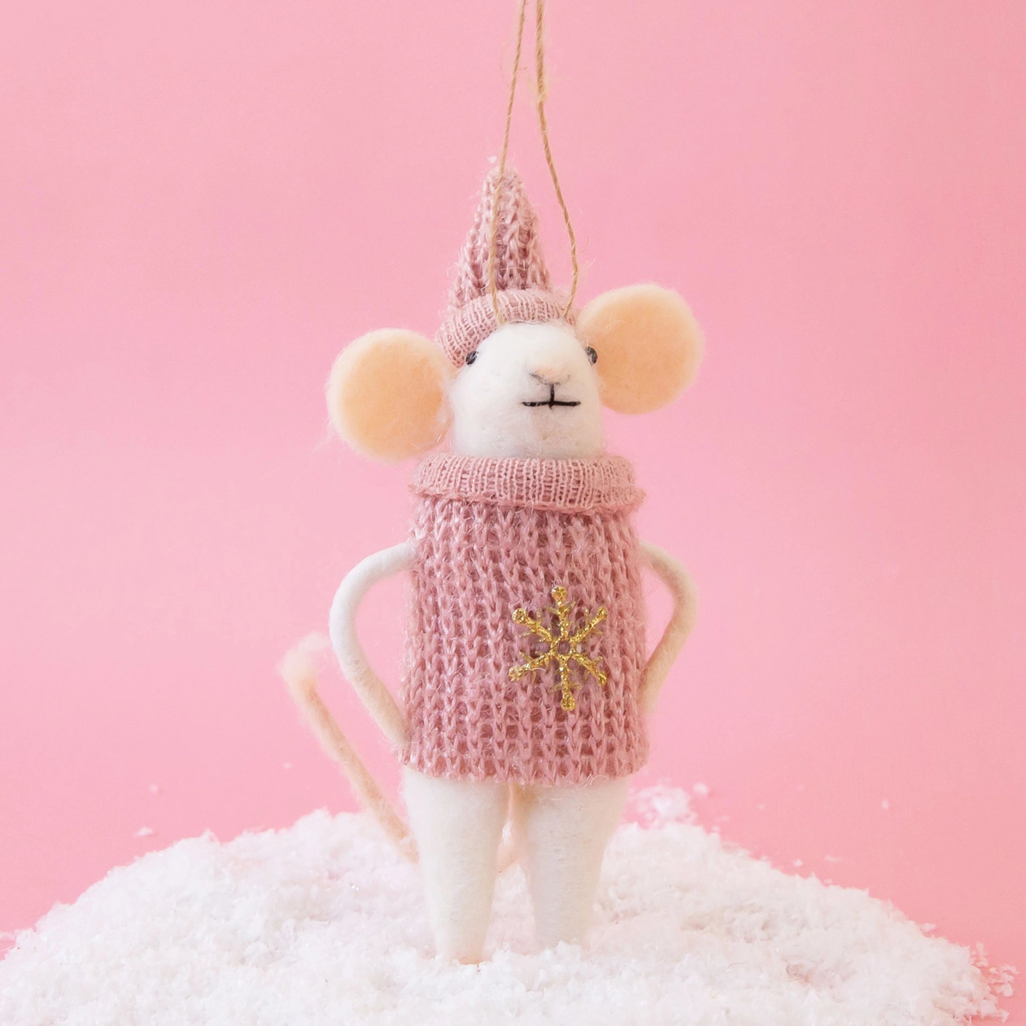 Add some personality to your holiday this year with Sally Snowflake Mouse Ornament! She's ready to spread some Christmas cheer with her pink turtleneck and gold snowflake sweater. Hang her on your mantle or tree and let the holiday festivities commence!