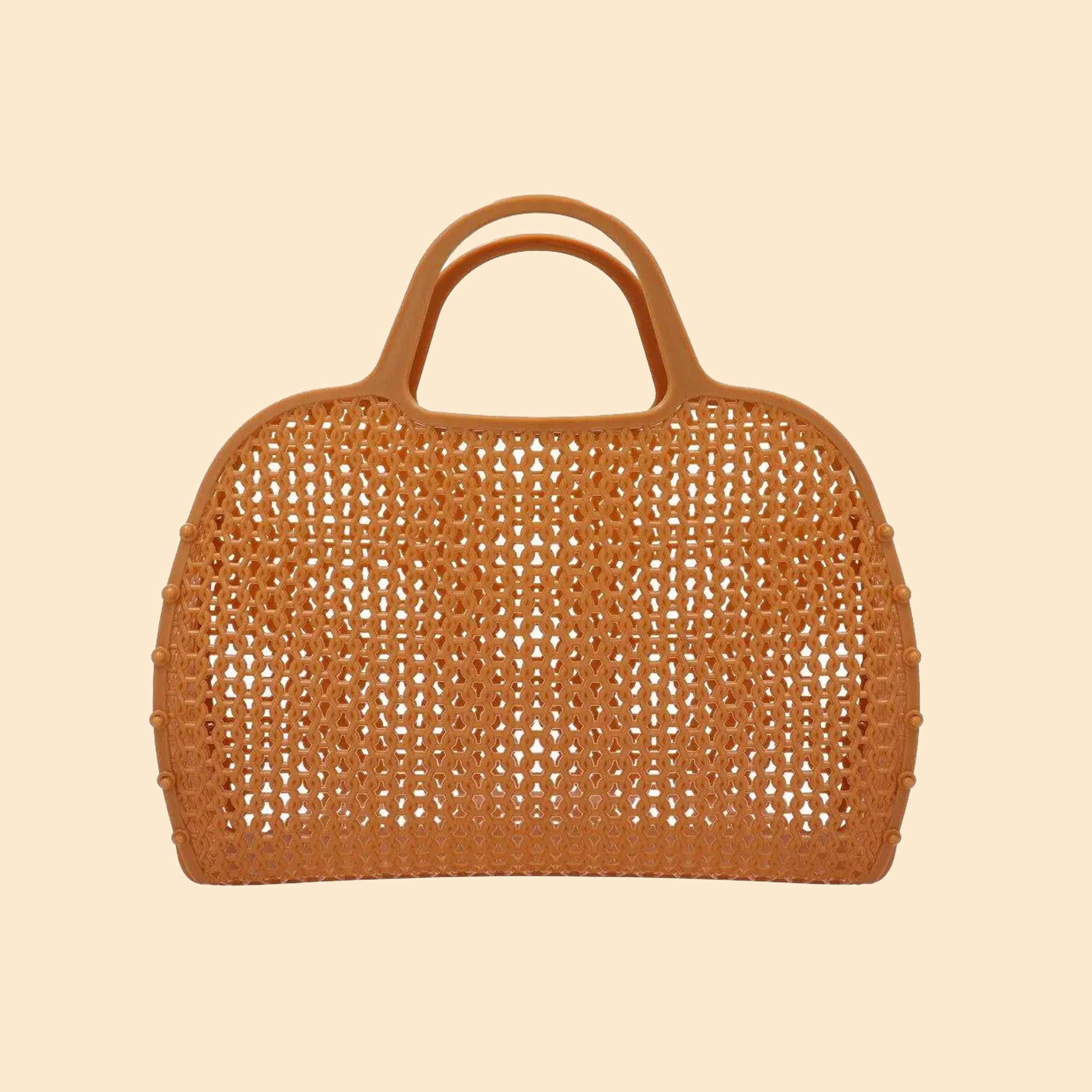The most fashionable bag for summer that looks just like a wicker handbag and now made of plastic and with a grid that's perfect for going to the beach, a day at the pool or going out for ice cream in the afternoon. It matches all your looks!