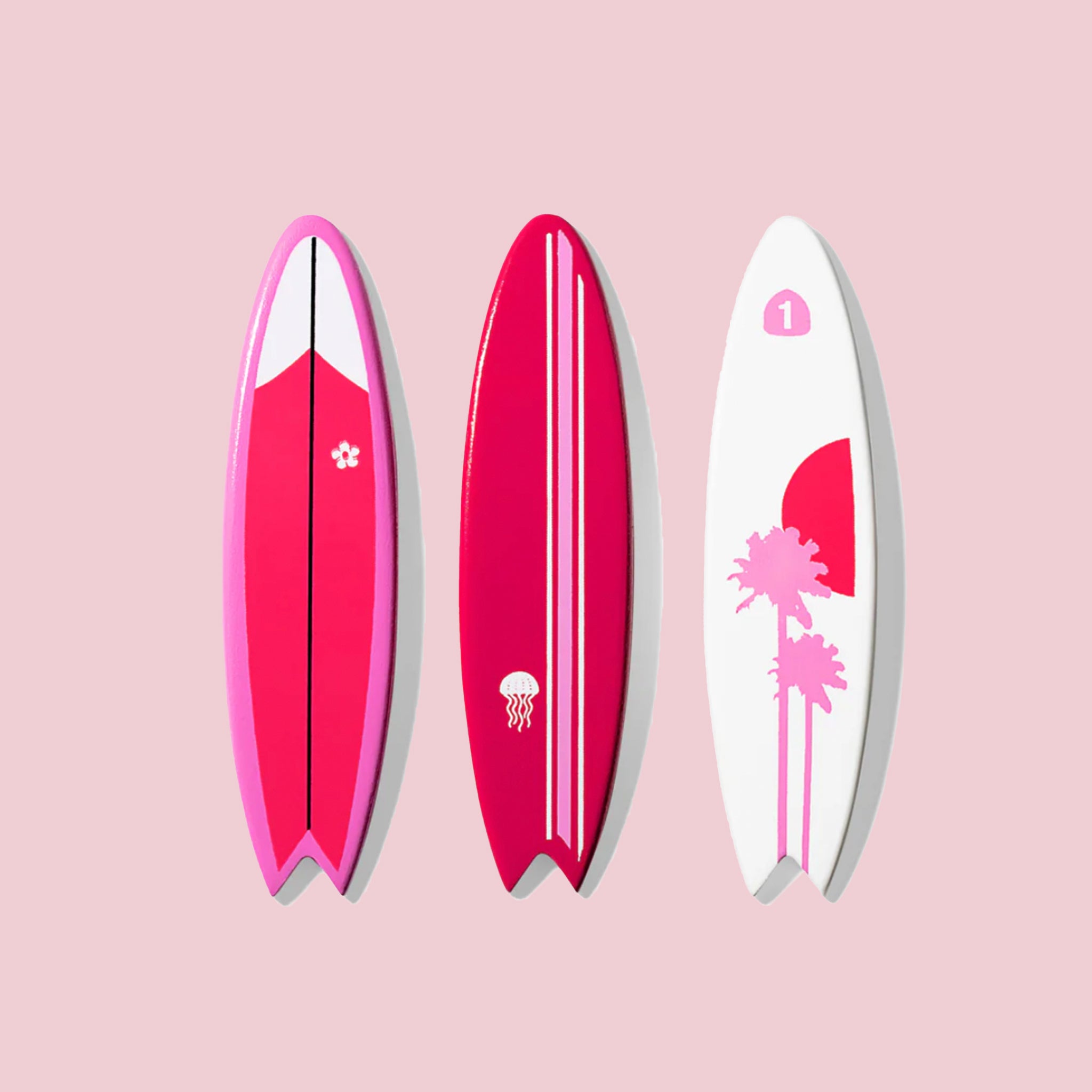 Grab this pack of 3 unique surfboards, each with an embedded magnet. Throw one on your Big Sur, Woodie, or refrigerator.