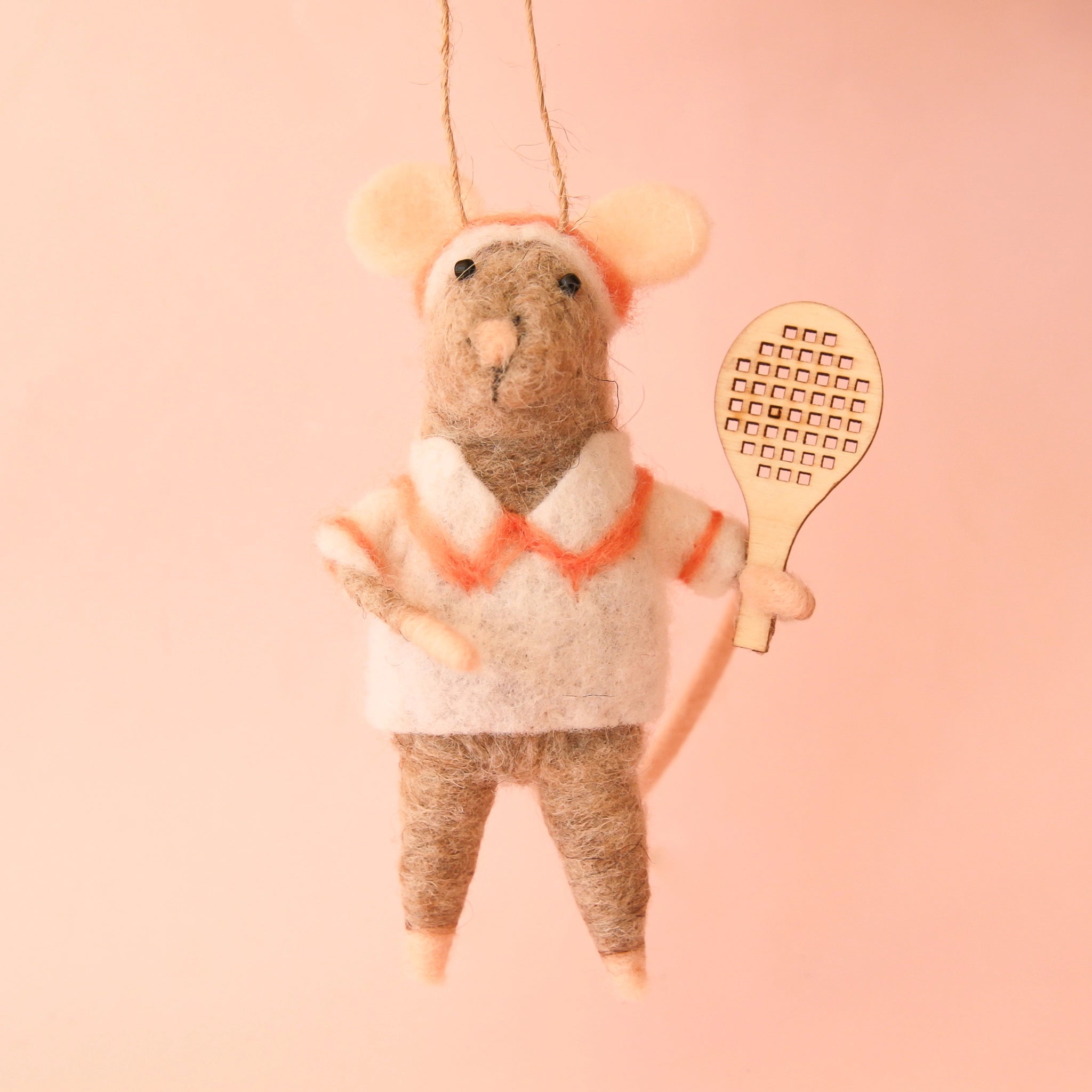 Deck the halls this holiday season with the Serena Mouse Ornament. Dressed to impress in a white and orange collared shirt accompanied by a tennis racket and sweatband, this sporty cutie has a winning smile is sure to bring some personality wherever you choose to hang it.