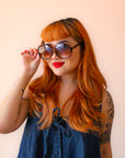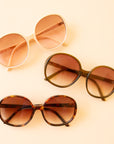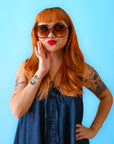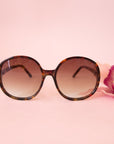 Unlock your inner fashionista with our Bardot Sunglasses in the shade Cognac, featuring a dark brown tortoise frame and dark brown lenses. The oversized round shape will make a statement and add a little 70s flair to any outfit! A must-have for any accessory lover!